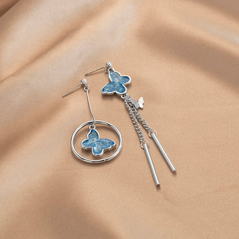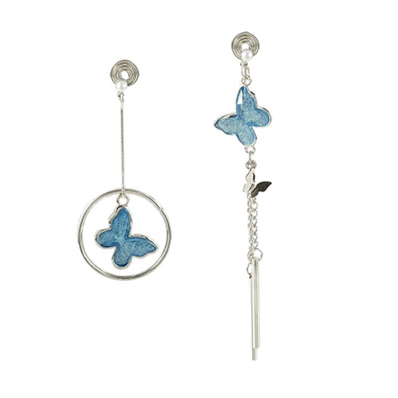 【TIEDUOシリーズ】★耳飾り★ ピアスorイヤリング 非対称 ペア 小物 アクセサリー レディース 蝶々 青 可愛い