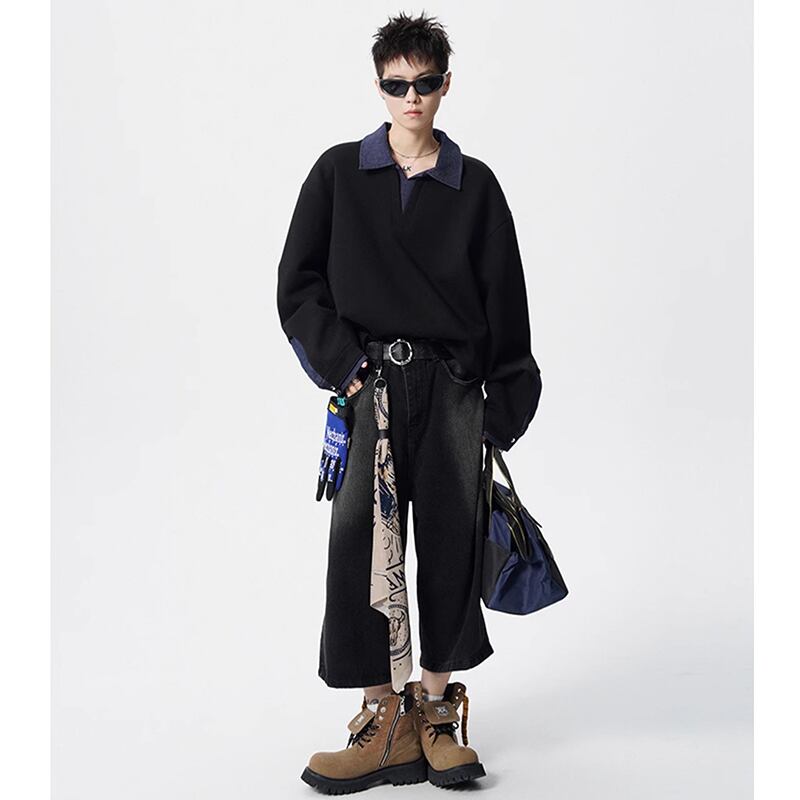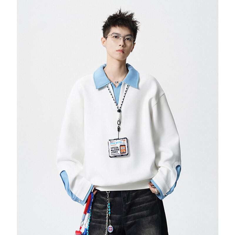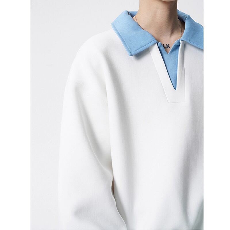 ✿秋新作!【OUDELUシリーズ】★POLOシャツ★ 2color トップス 男女兼用 メンズ フェイクレイヤード ホワイト ブラック 黒 白