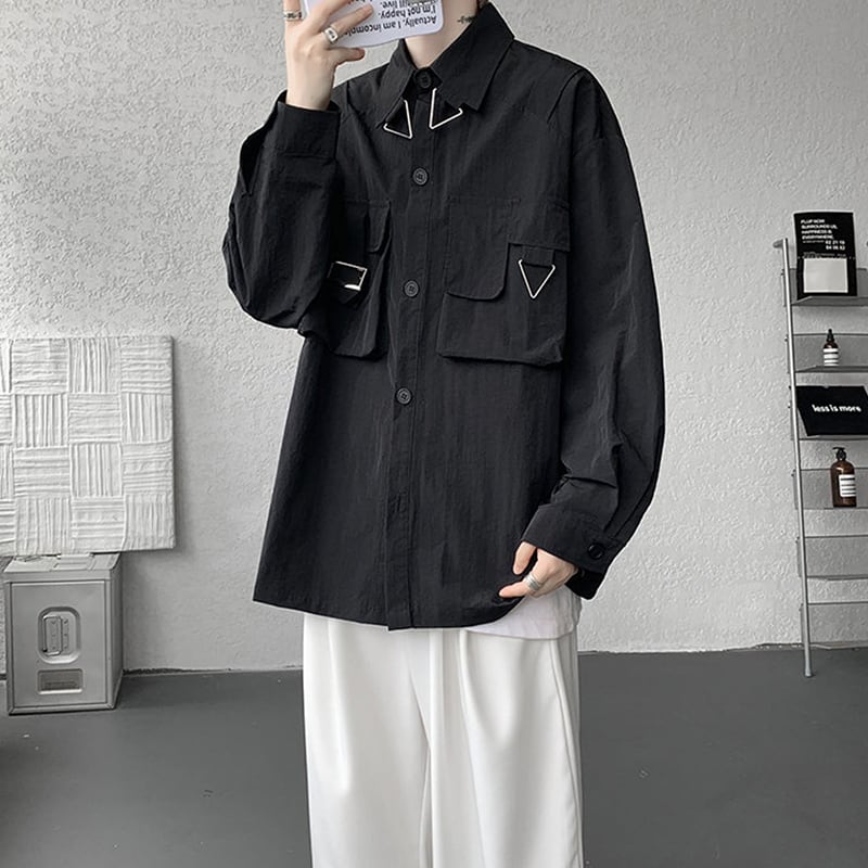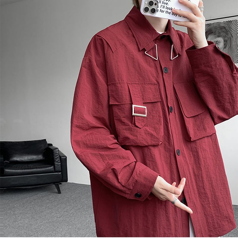 ✿秋新作!【ZHUIYIリーズ】★シャツ★ 4color トップス 長袖 男女兼用 メンズ 大きいサイズ 黒 白 赤 青 カジュアル