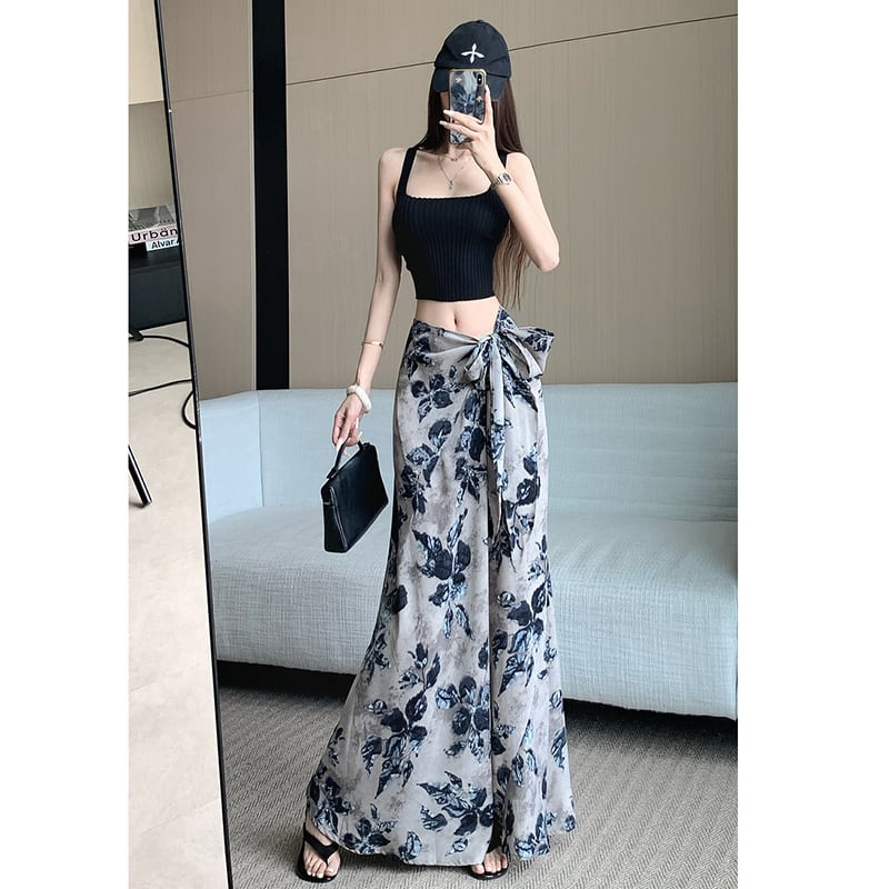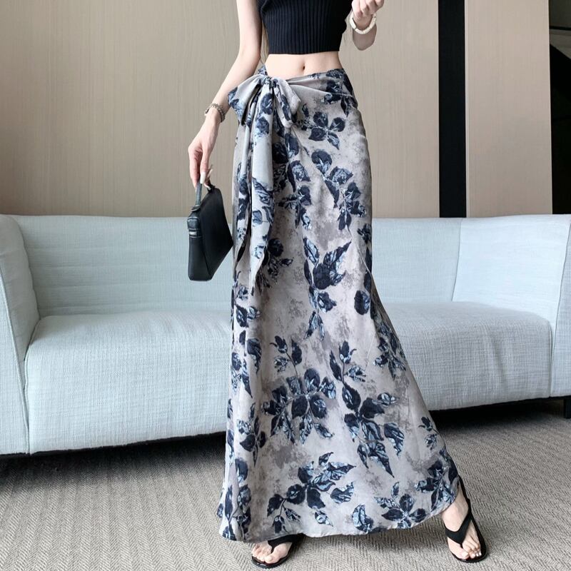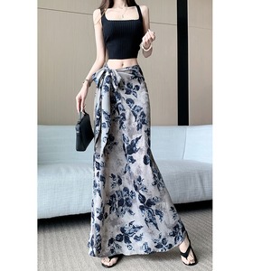 【XIAOHANシリーズ】★チャイナ風スカート★ ボトムス 着痩せ レディース 合わせやすい 花柄 シフォン