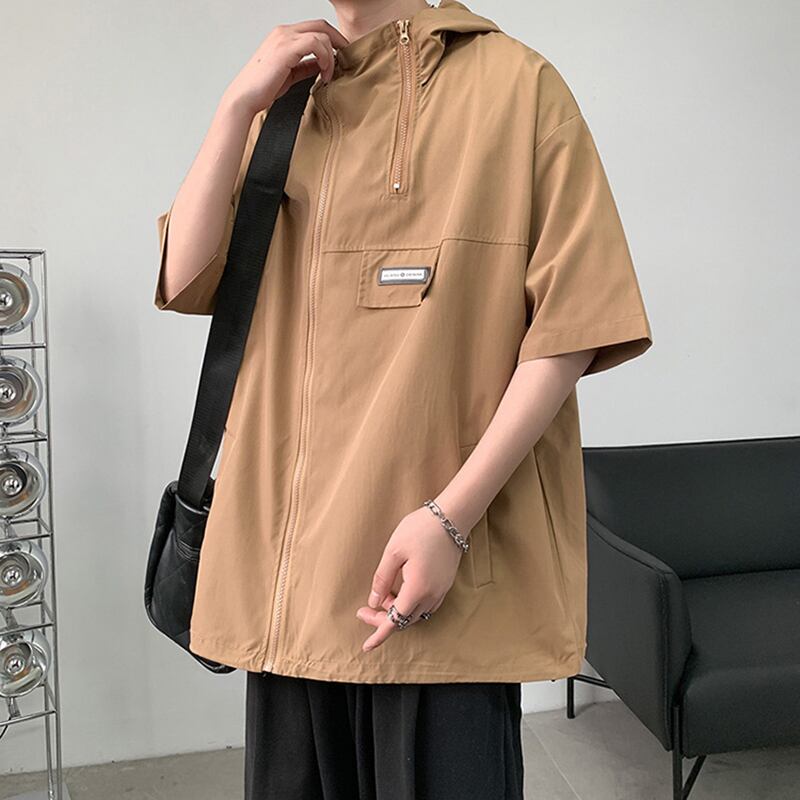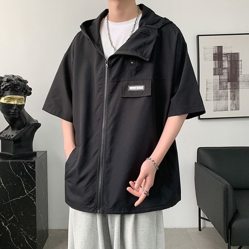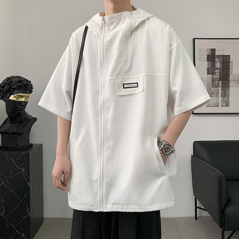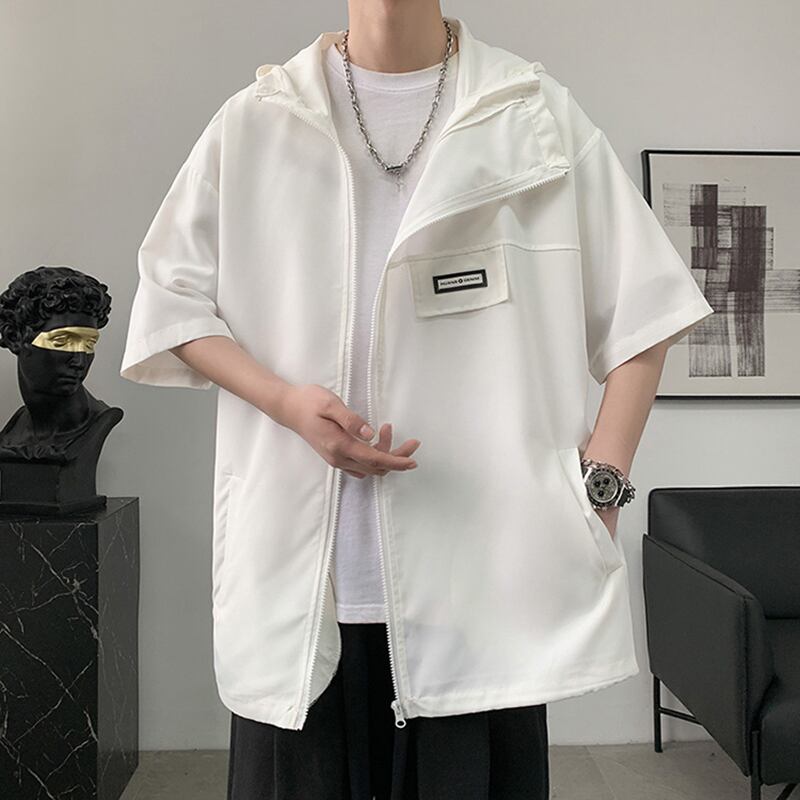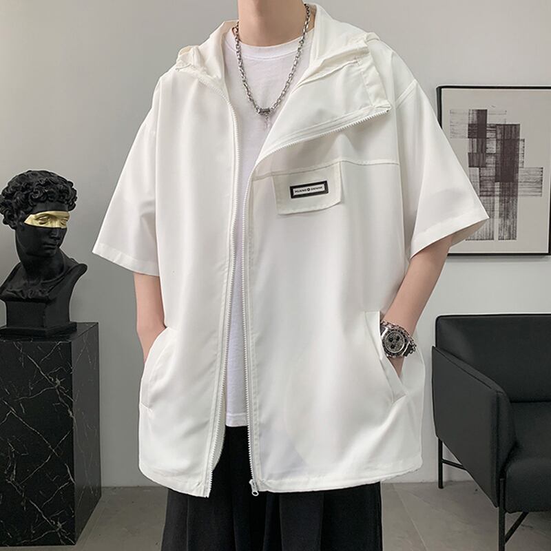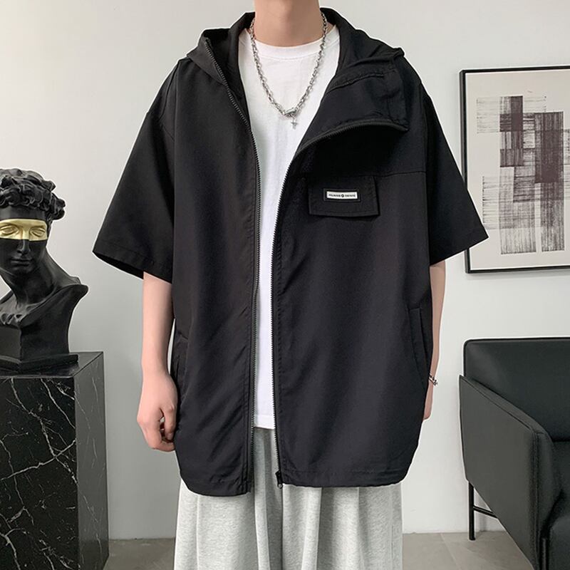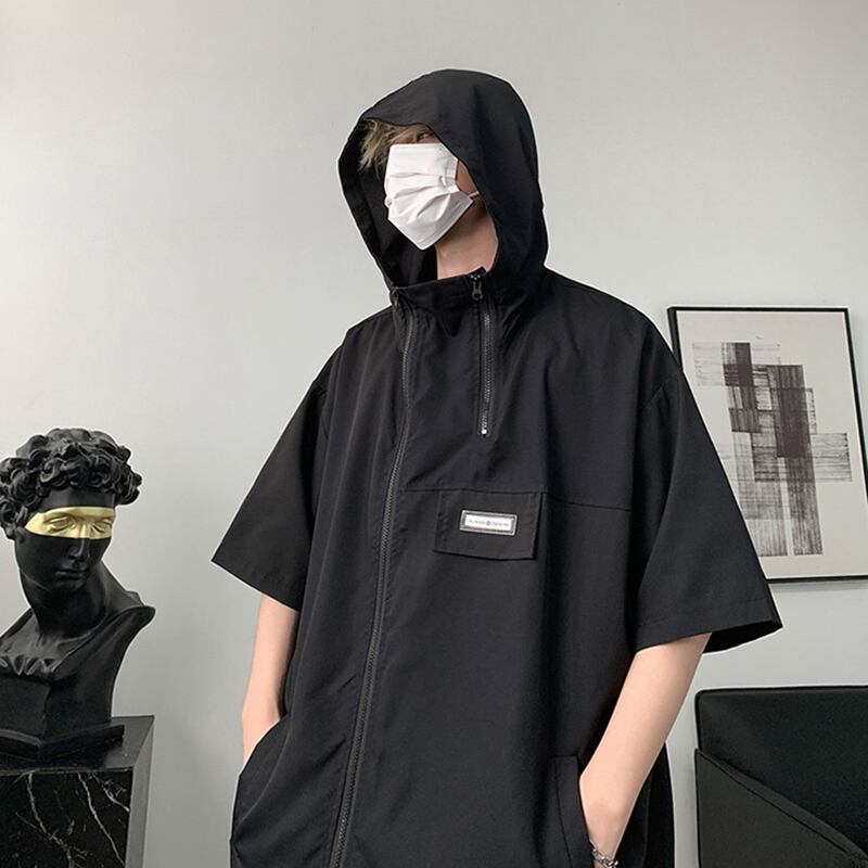 【TIANYIシリーズ】★トップス★ 3color 帽子付き アウター 半袖 男女兼用 メンズ 大きいサイズ 黒 白 カジュアル