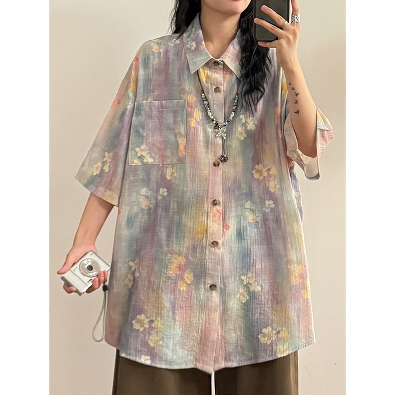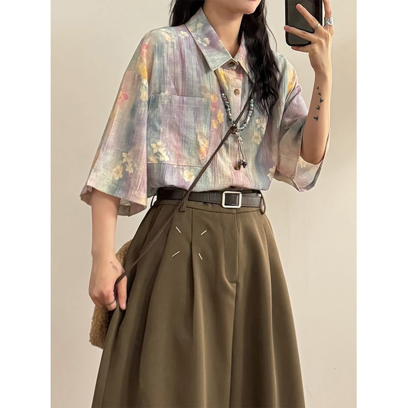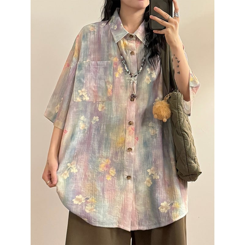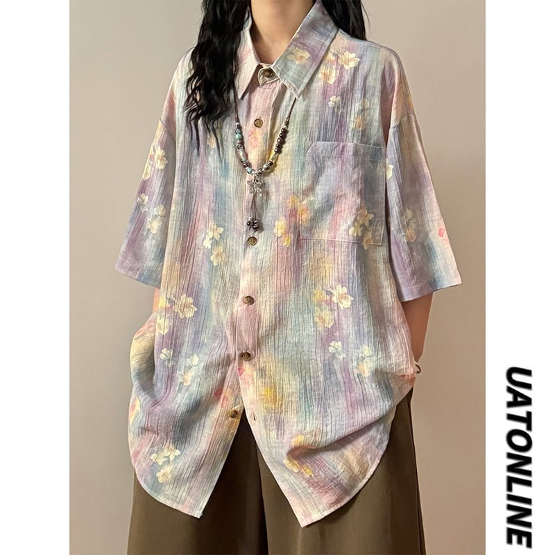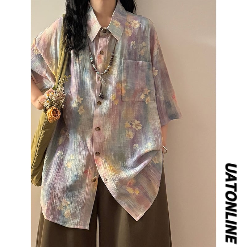 【UATONLINEシリーズ】★シャツ★ トップス プリント 花柄 半袖シャツ 男女兼用 メンズ スモールフラワーオムブレ