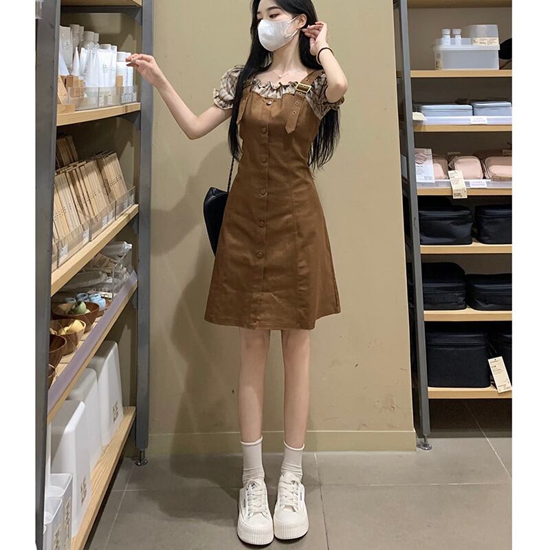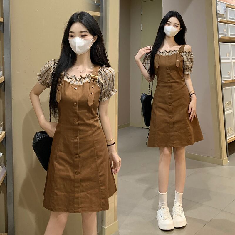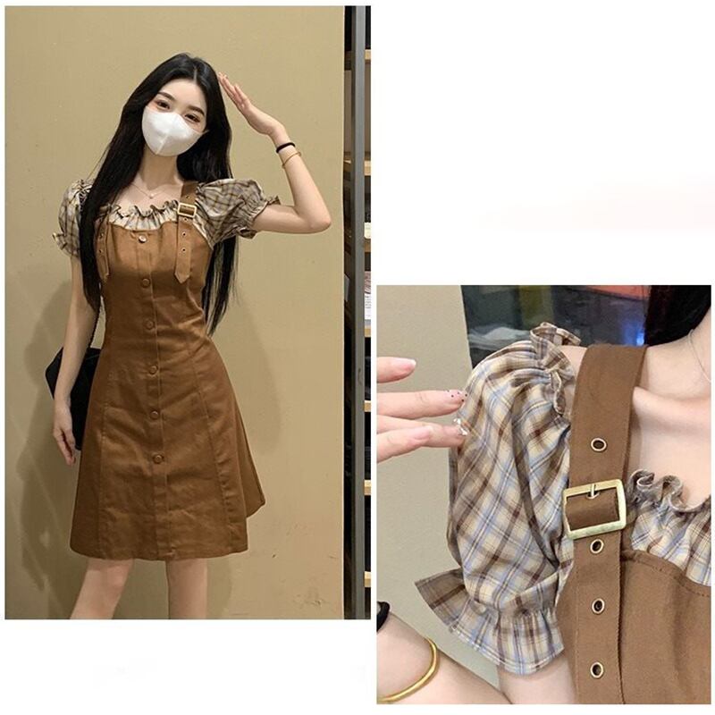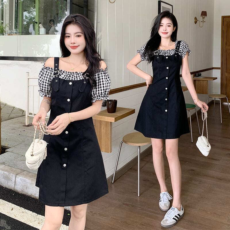 【JIGUJIGUシリーズ】★ワンピース★ 2color レディース フェイクレイヤード チェック柄 着痩せ 大きいサイズ 可愛い デート 夏服