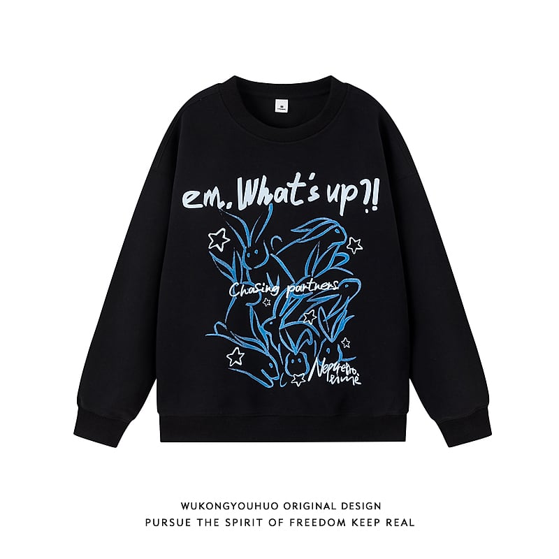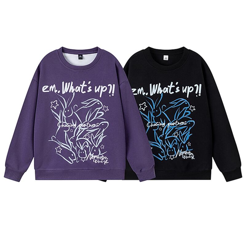 ✿秋新作!【K787シリーズ】★トップス★ 2color スウェット 男女兼用 メンズ 兎 落書き ブラック パープル 黒 紫