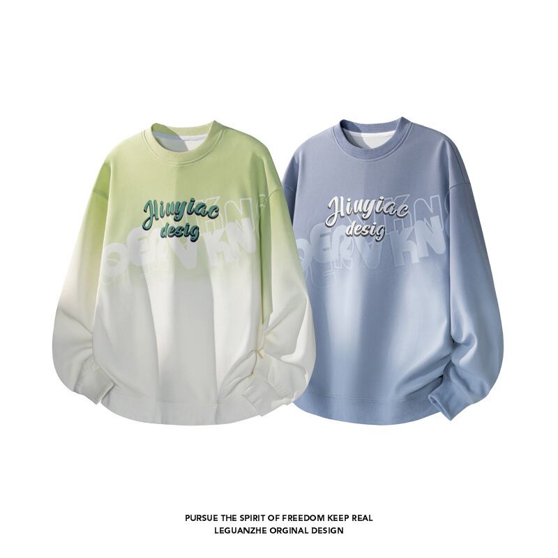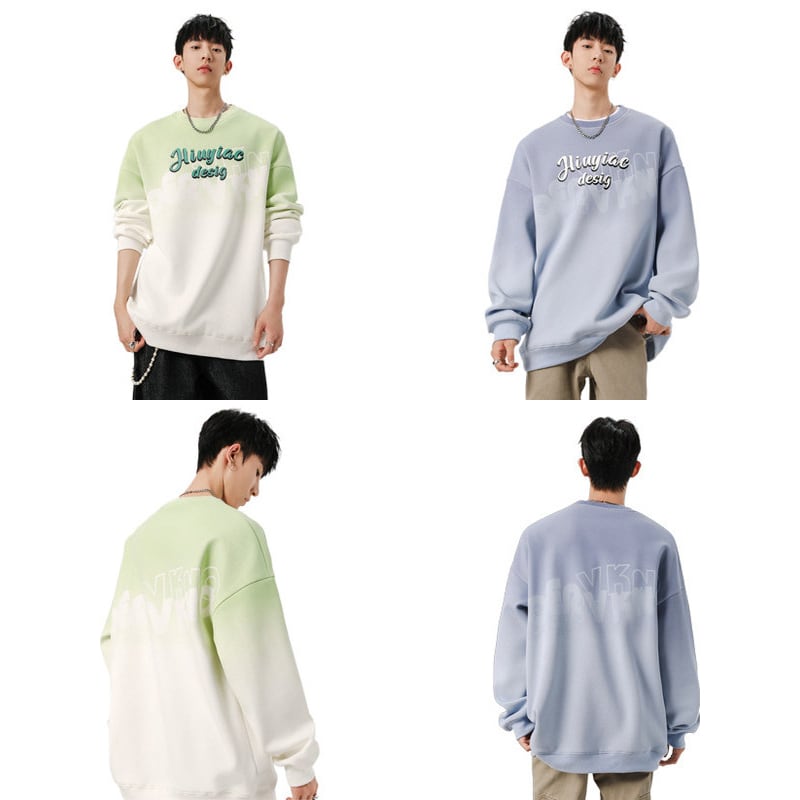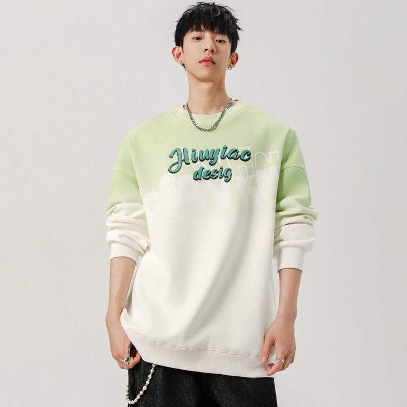 ✿秋新作!【BIGEMANシリーズ】★トップス★ 2color スウェット 男女兼用 メンズ 大きいサイズ 緑 青 配色 アルファベット