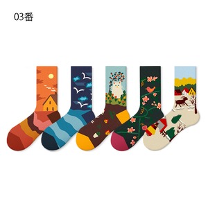 【LUMIシリーズ】★靴下★セット 5足 8タイプ ソックス 合わせやすい 可愛い 個性的 カートゥーン 油絵風 動物柄