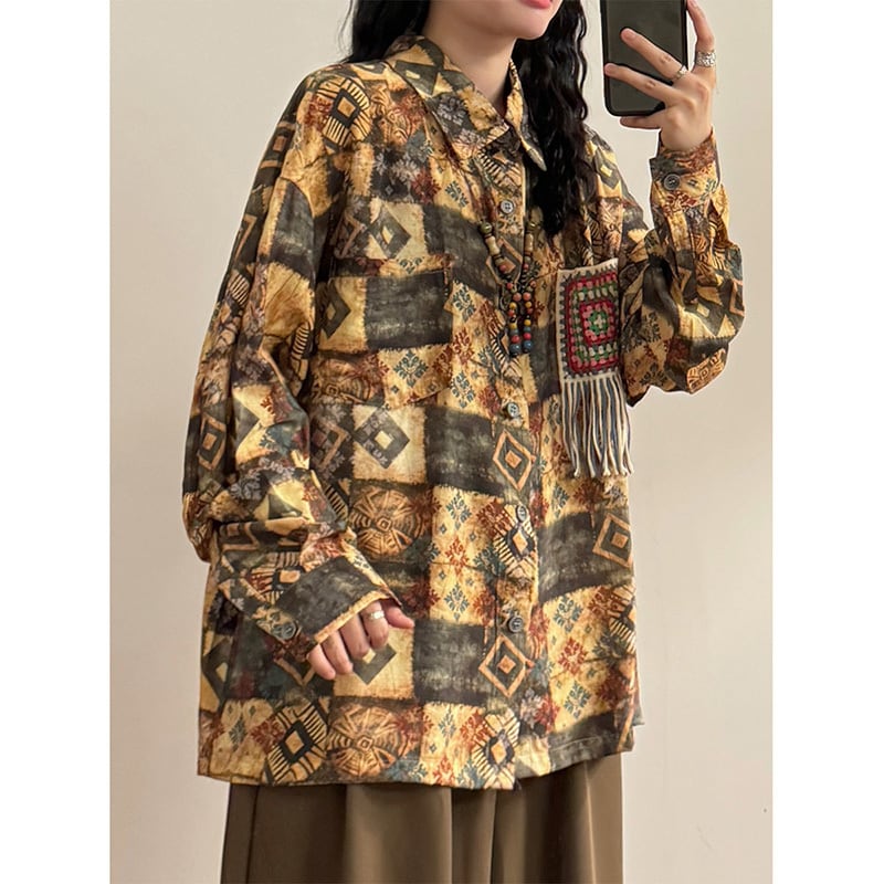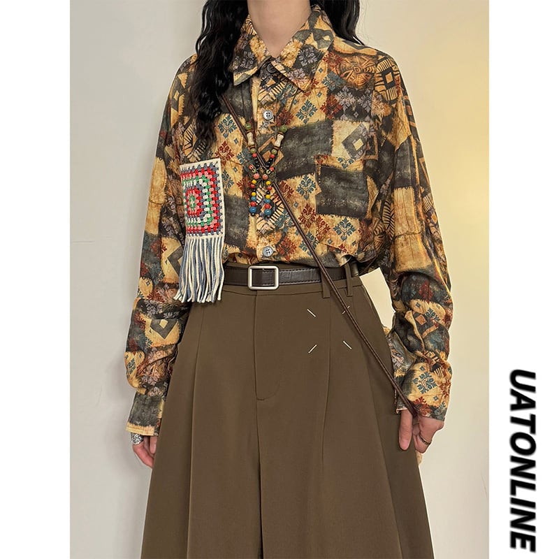 ✿秋新作!【UATONLINEシリーズ】★チャイナ風トップス★ 長袖シャツ トップス 男女兼用 メンズ エスニック風