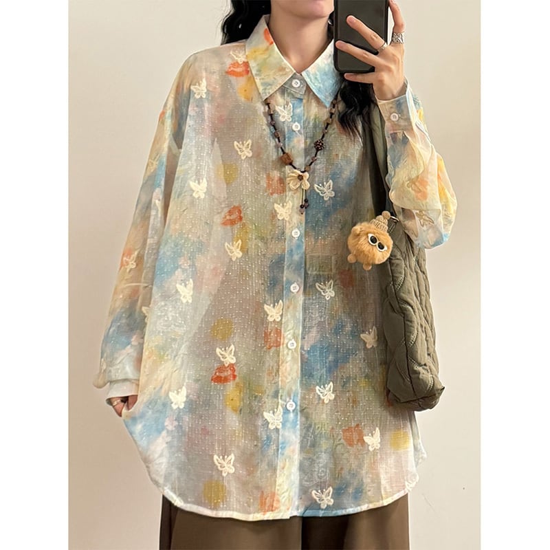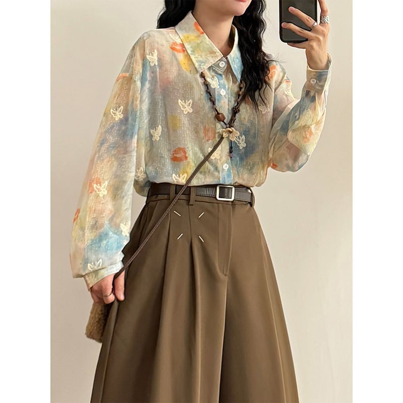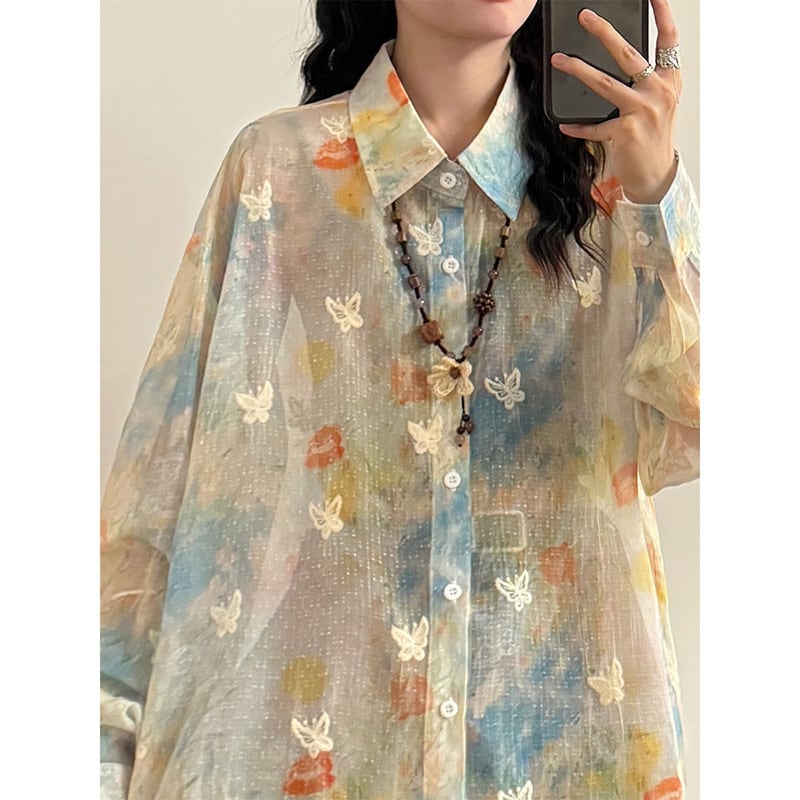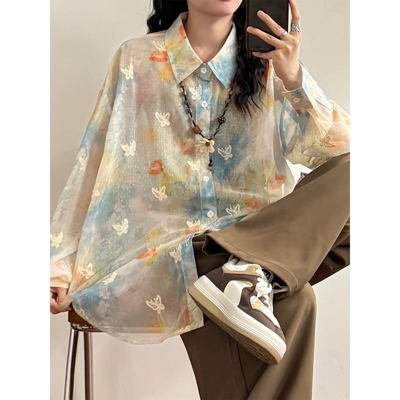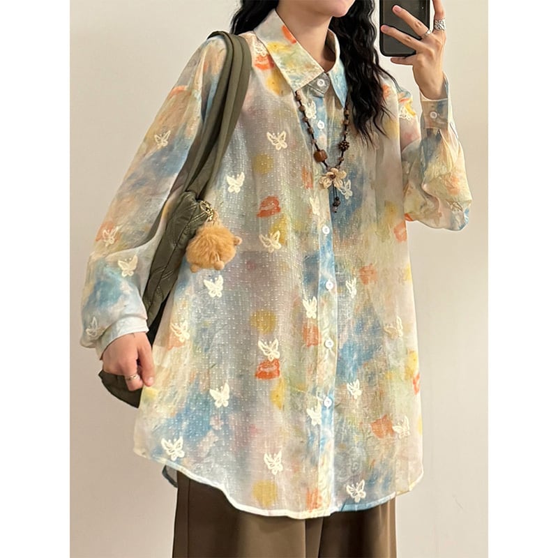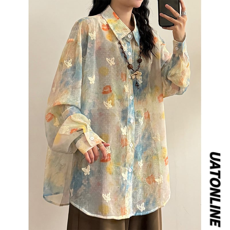 ✿秋新作!【UATONLINEシリーズ】★シャツ★ 長袖シャツ トップス 男女兼用 メンズ 透け感有り 蝶々