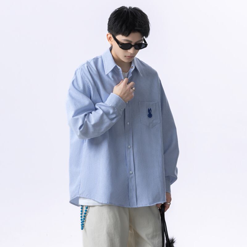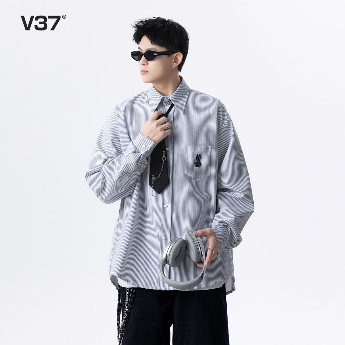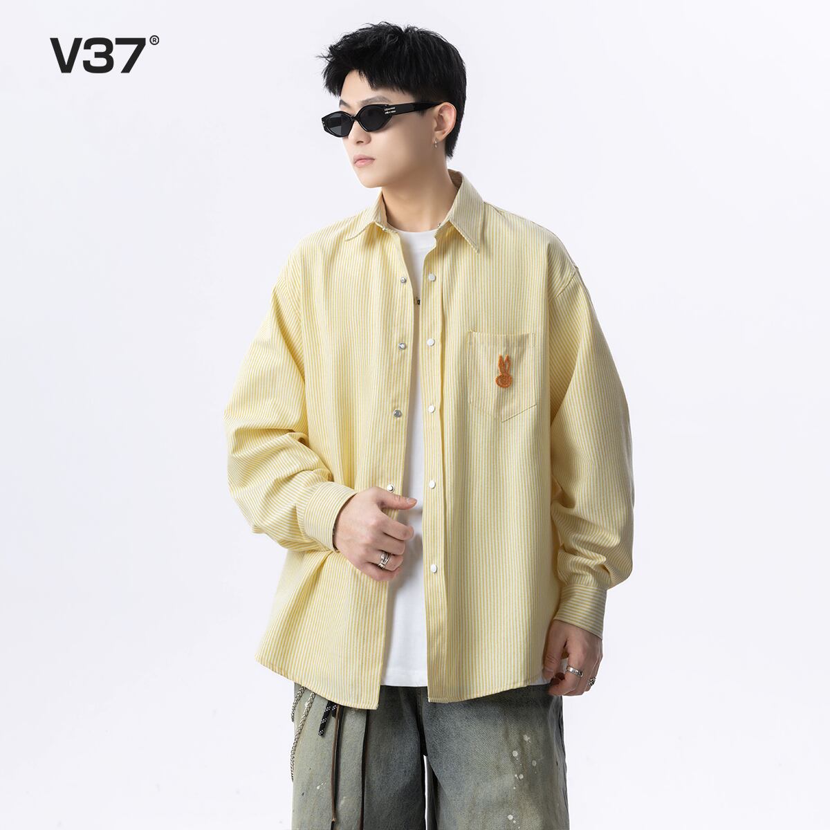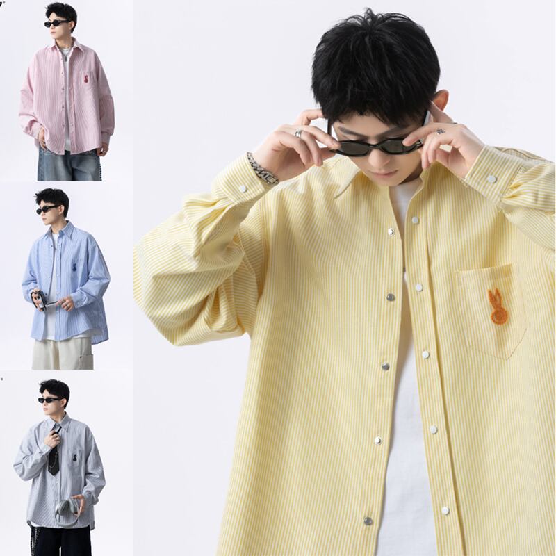 ✿秋新作!【V37リーズ】★シャツ★ 4color トップス 長袖 男女兼用 メンズ 大きいサイズ 縦縞 縞模様 黄 灰 青