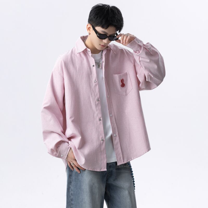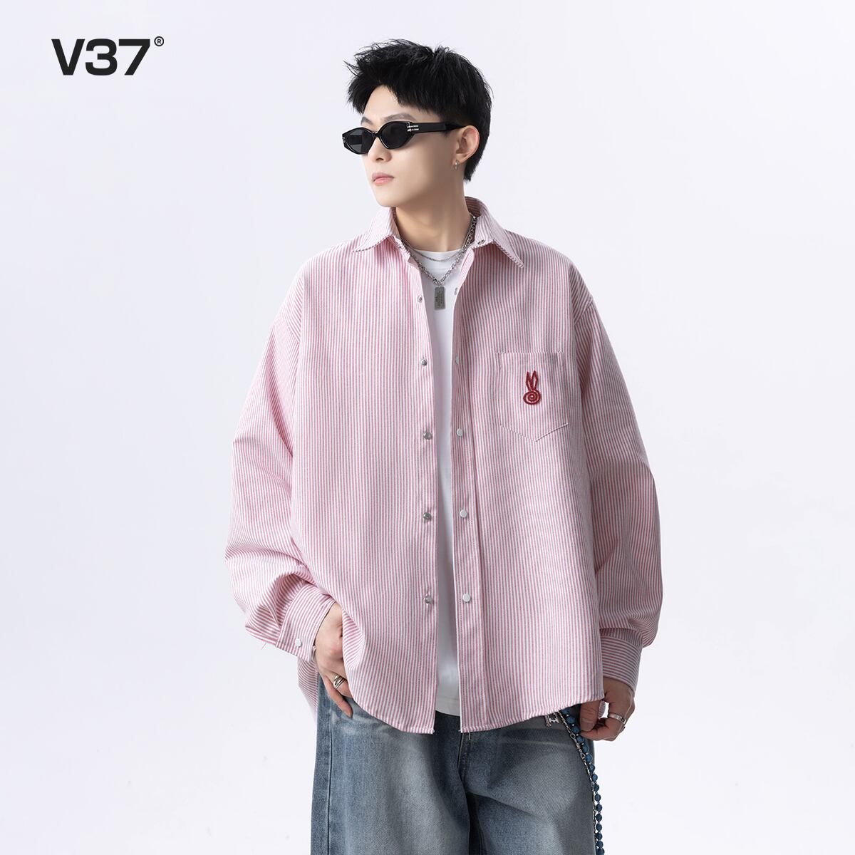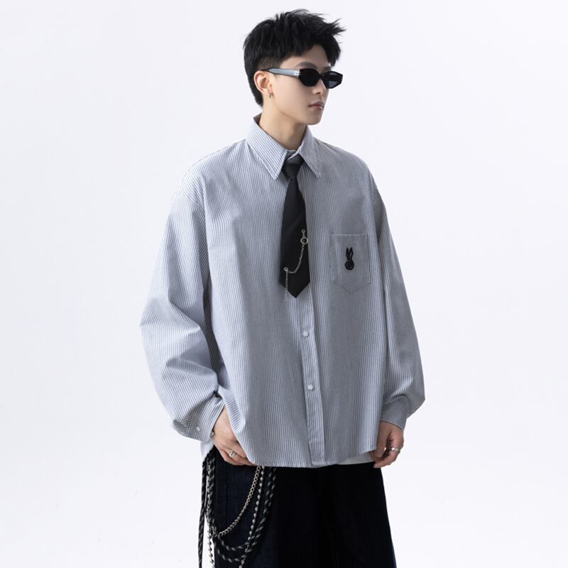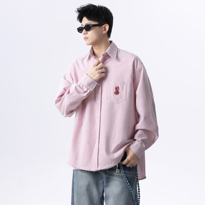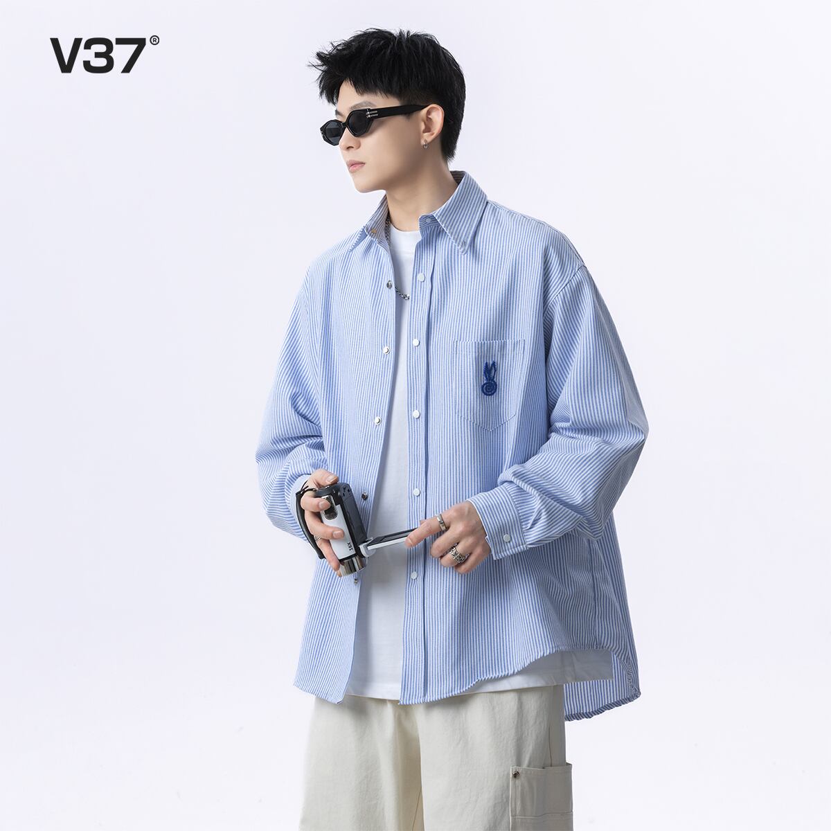 ✿秋新作!【V37リーズ】★シャツ★ 4color トップス 長袖 男女兼用 メンズ 大きいサイズ 縦縞 縞模様 黄 灰 青