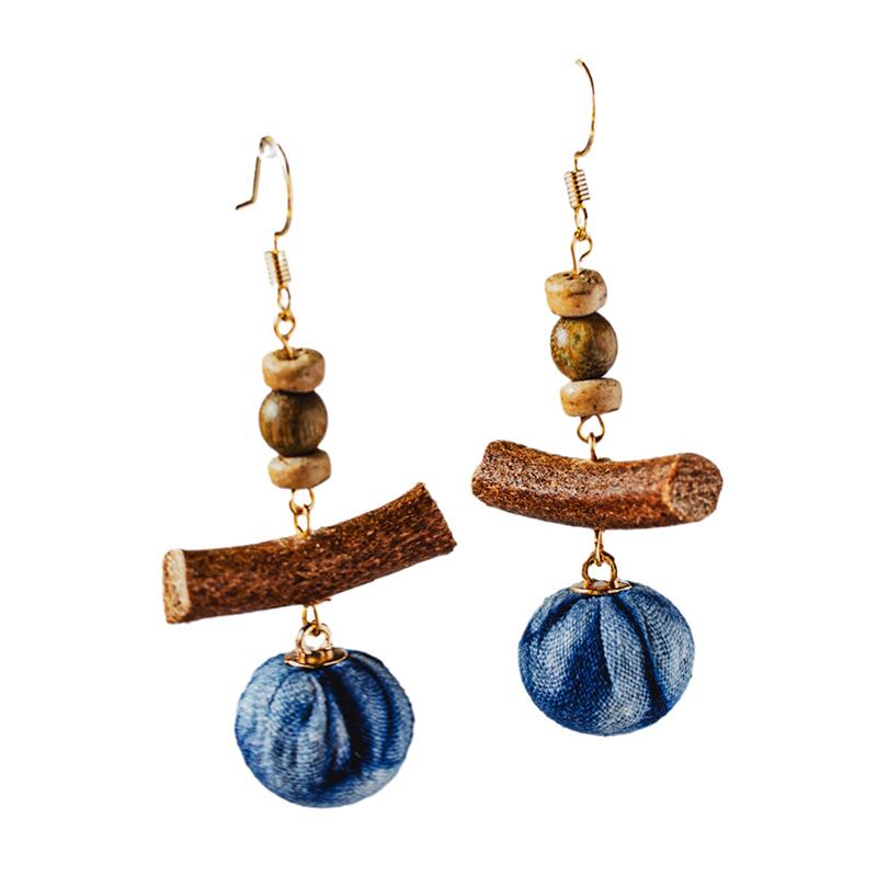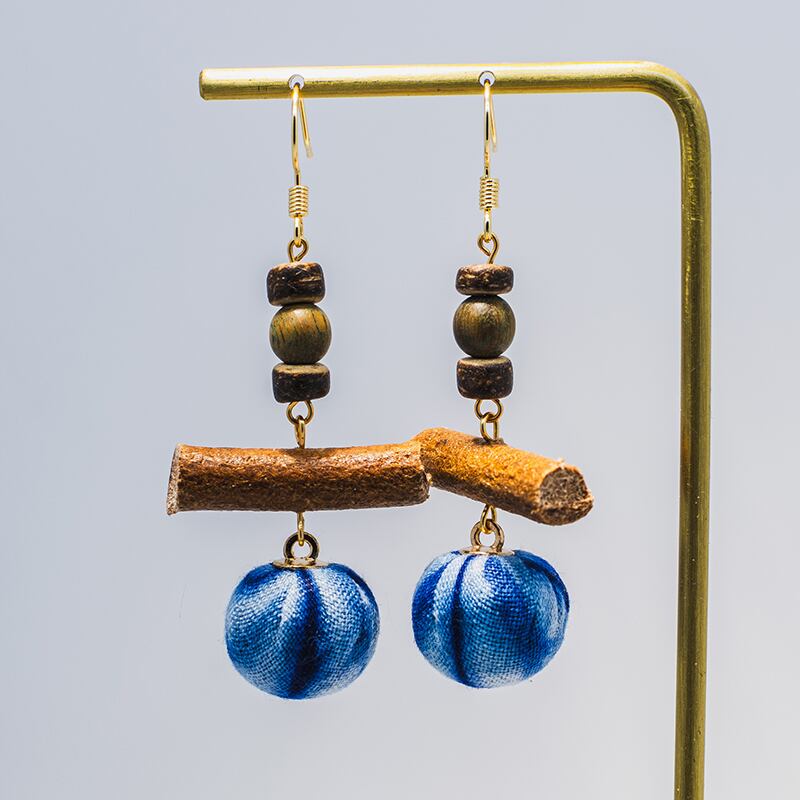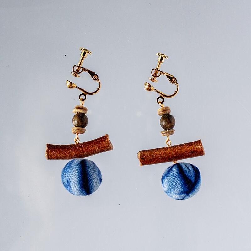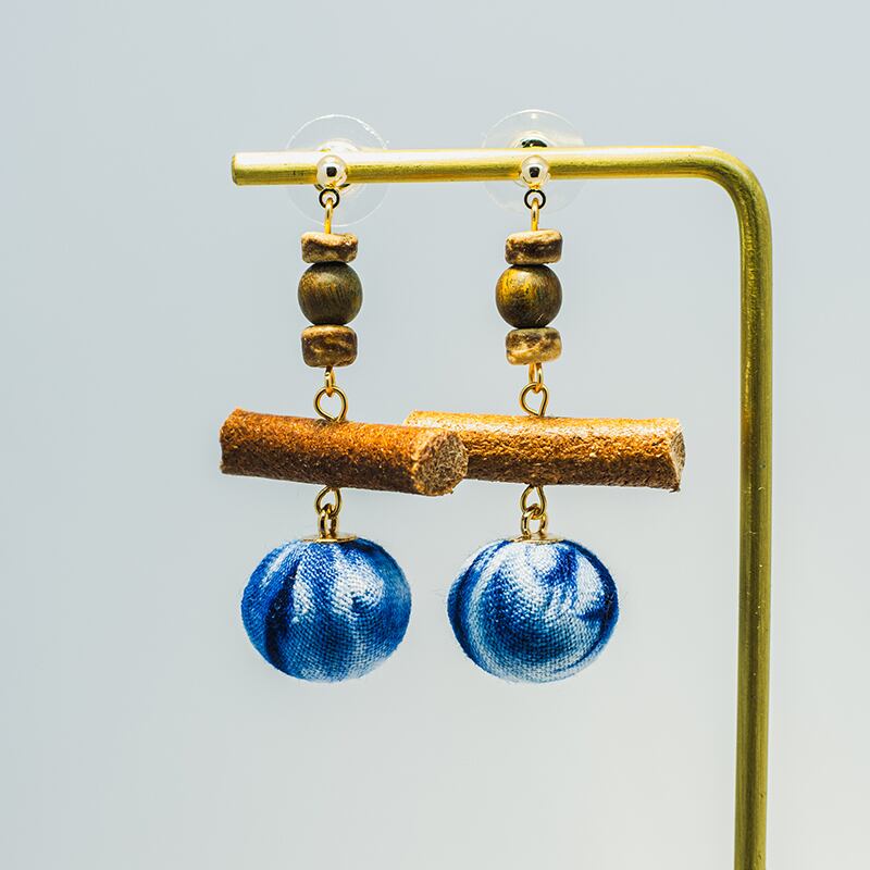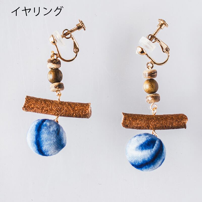 【LANRANシリーズ】★チャイナ風耳飾り★ ピアスorイヤリング ペア アクセサリー レディース 手作り 青 軽い 絞り染め