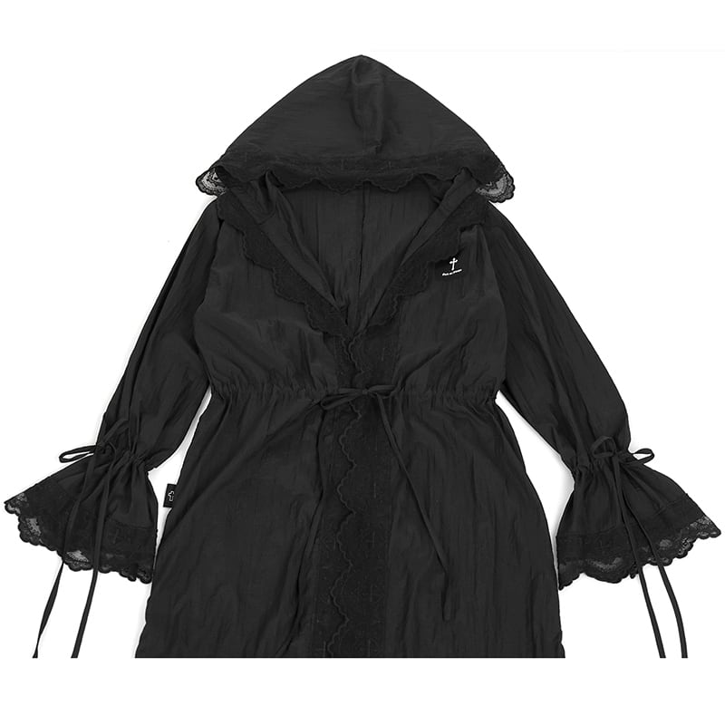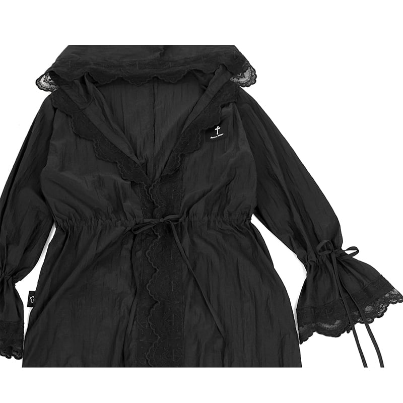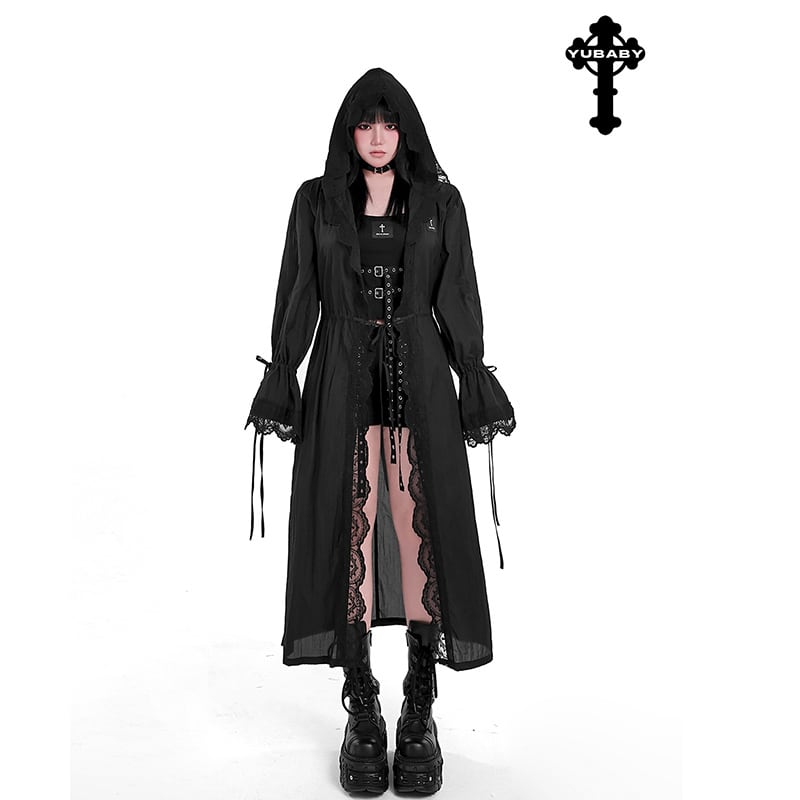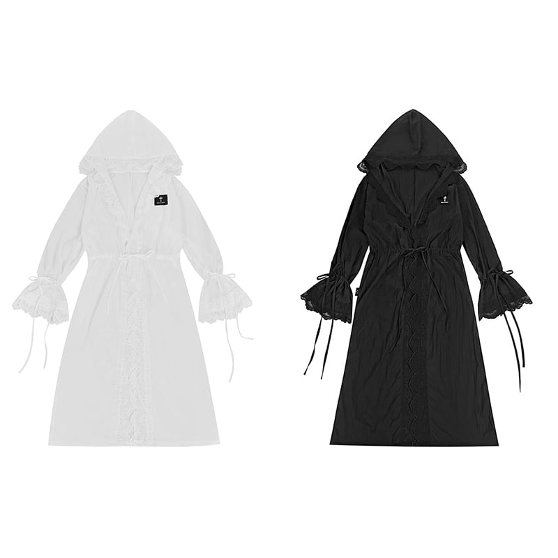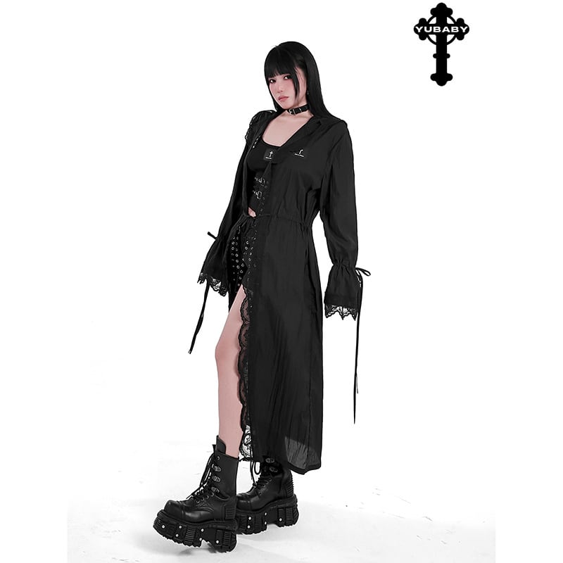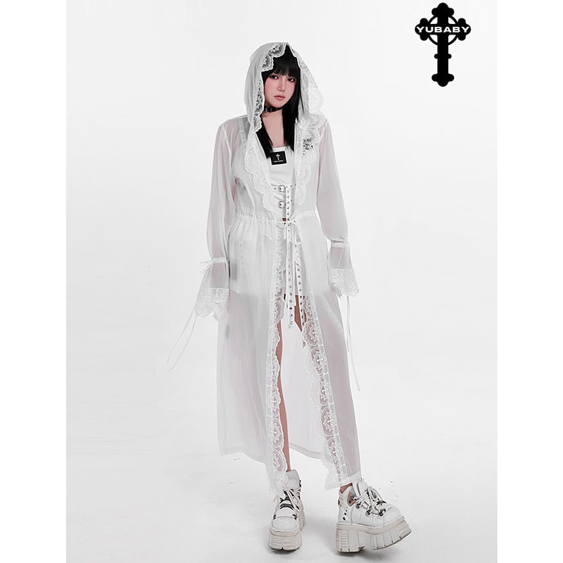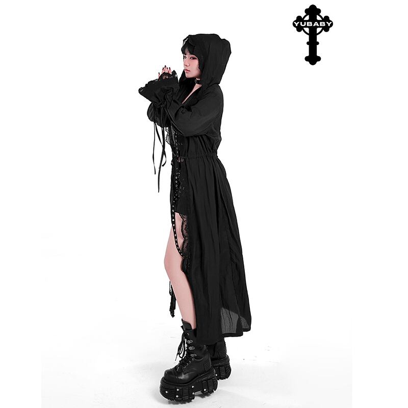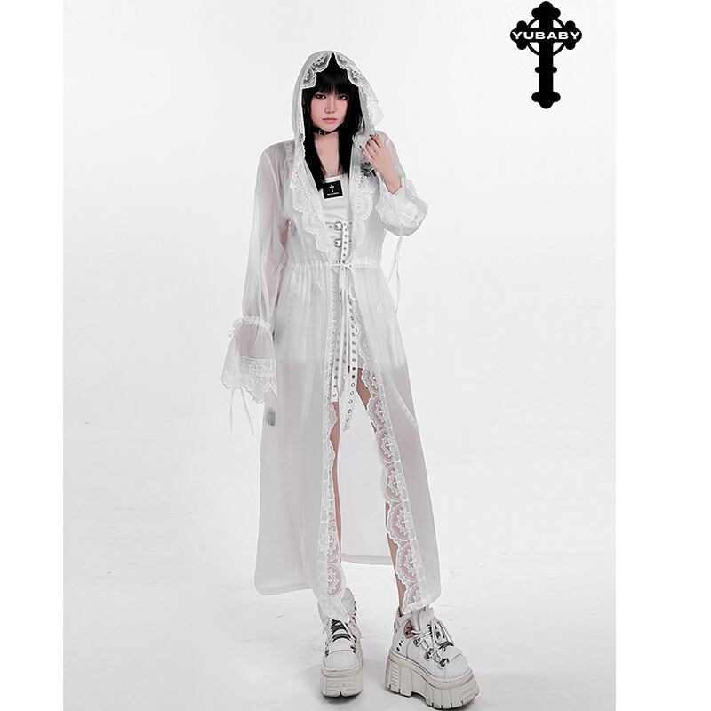 【YUBABYシリーズ】★アウター★ 2color ロング丈 レディース ブラック ホワイト 黒 白 薄い 可愛い 切り替え