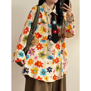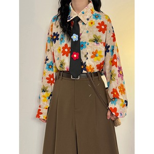 【UATONLINEシリーズ】★ネクタイ付きシャツ★ 油絵風 トップス 花柄シャツ 長袖シャツ 男女兼用 メンズ