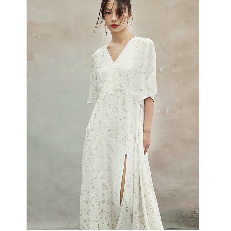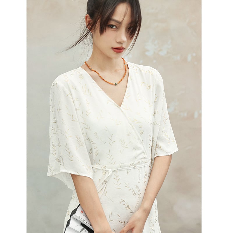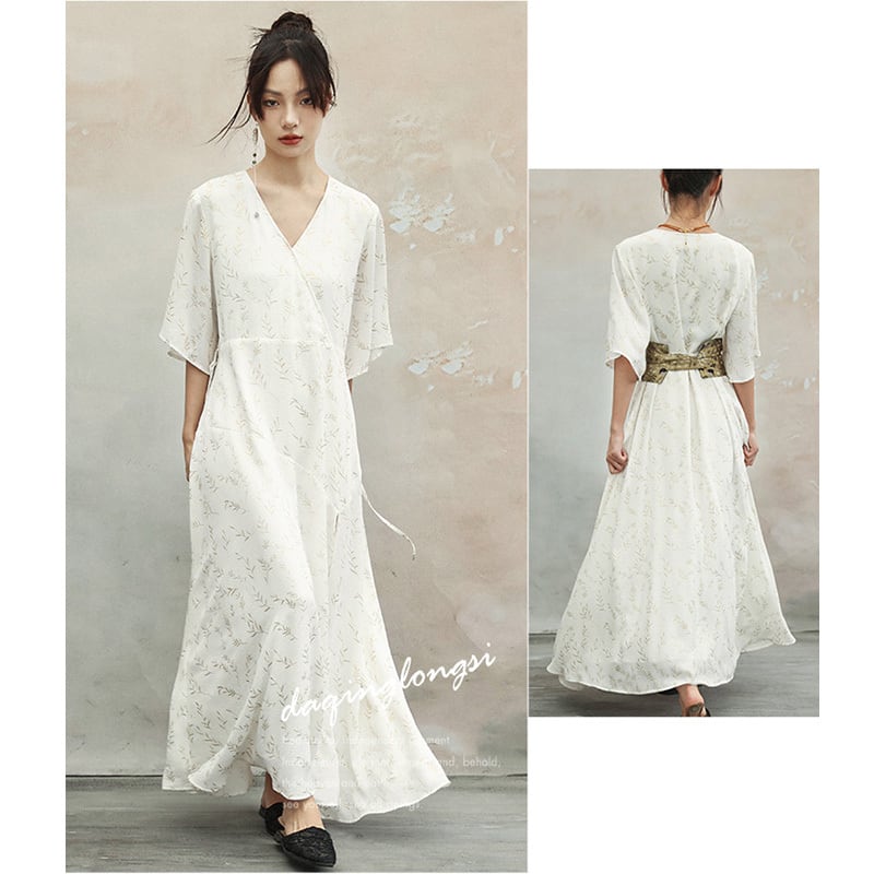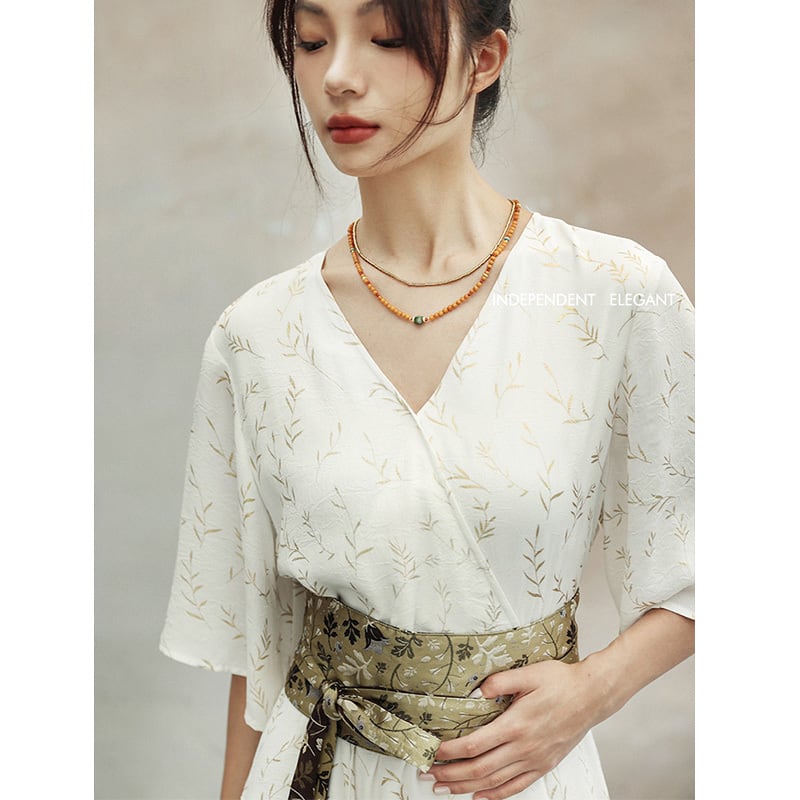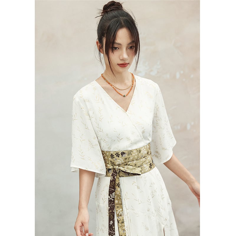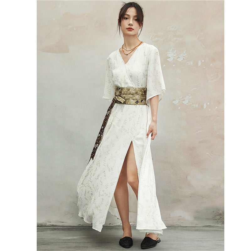 【大青龍肆シリーズ】★チャイナ風ワンピース★ ベルト付きワンピース Vネック スリット 漢元素