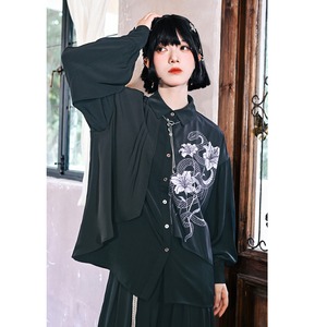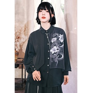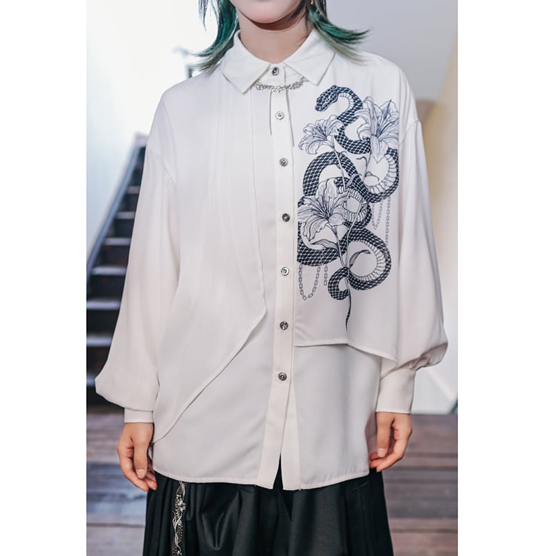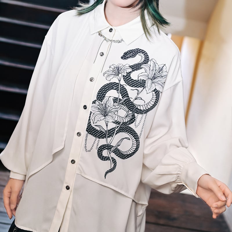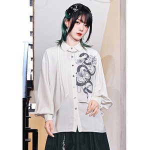 【古怪舍---鱗境シリーズ】★チャイナ風トップス★ 2color シャツ 長袖シャツ フェイクレイヤード 蛇 プリント