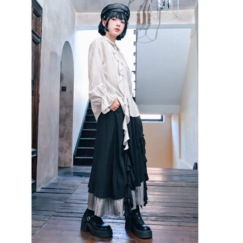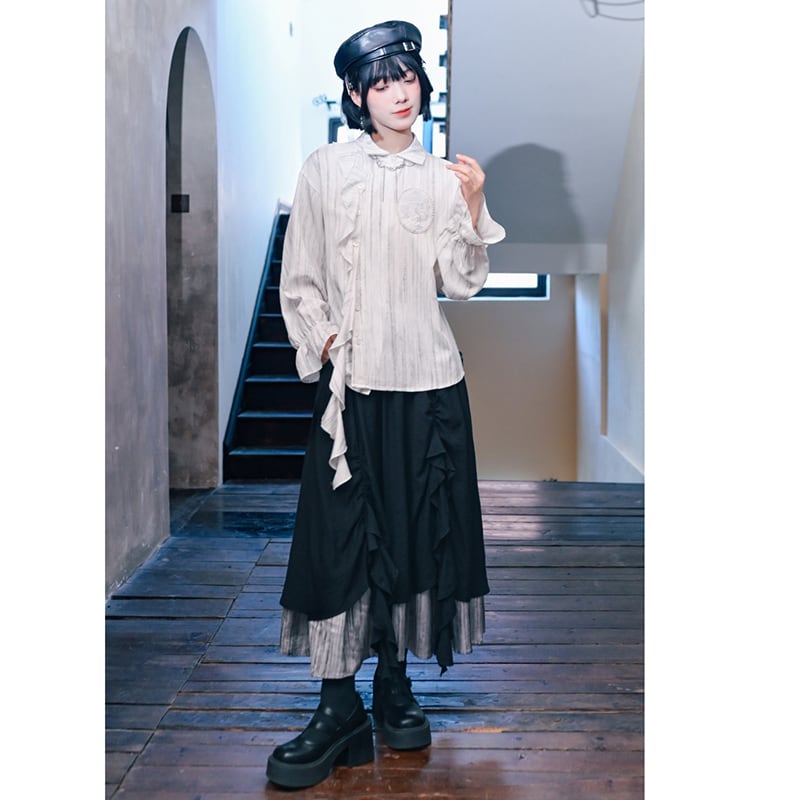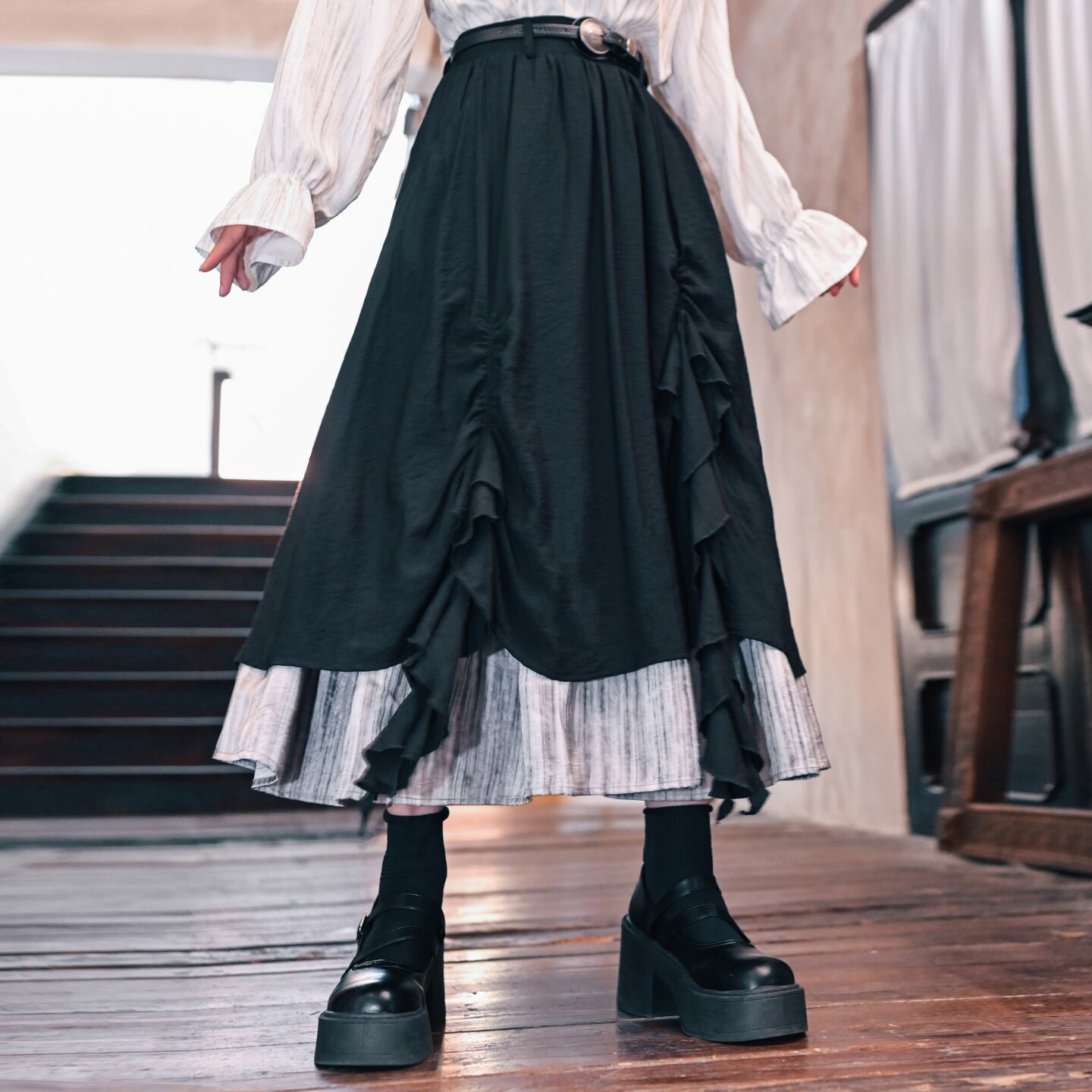 【古怪舍---幻海絮語シリーズ】★チャイナ風スカート★ ボトムス 切り替え オリジナル 可愛い ブラック 黒い