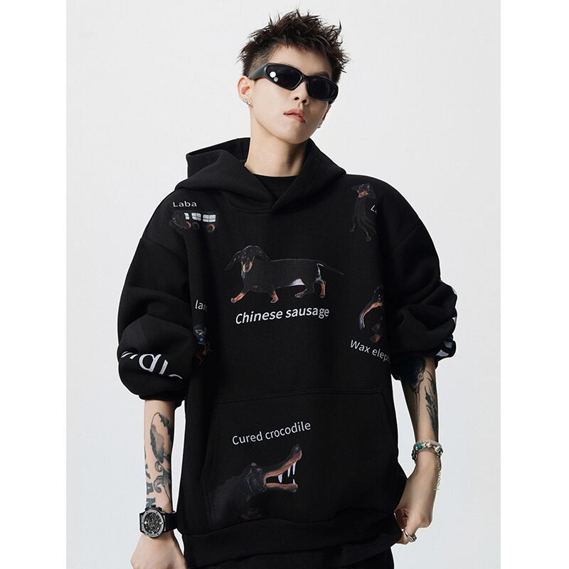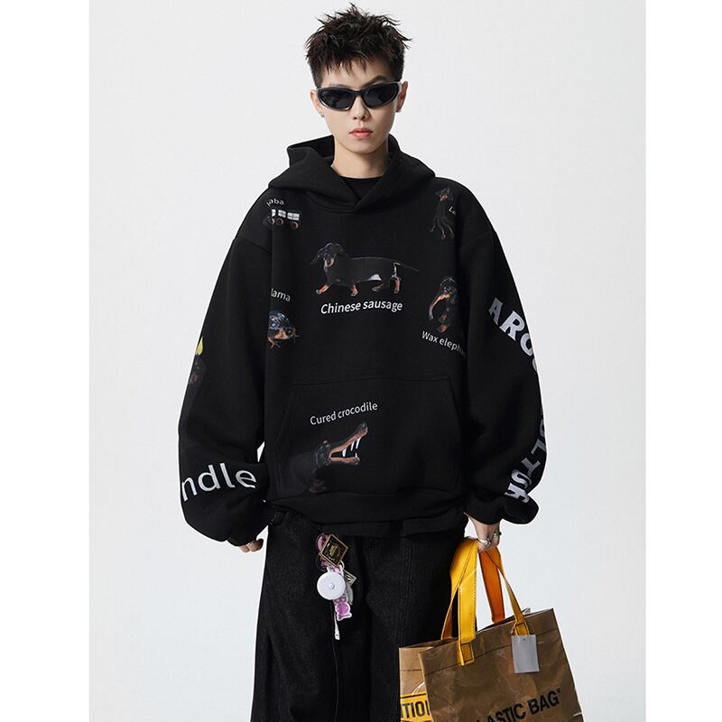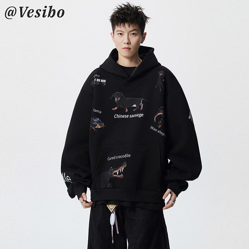 ✿秋新作!【Vesiboシリーズ】★パーカー★ トップス 男女兼用 メンズ プリント いぬ 犬 カジュアル ブラック 黒い
