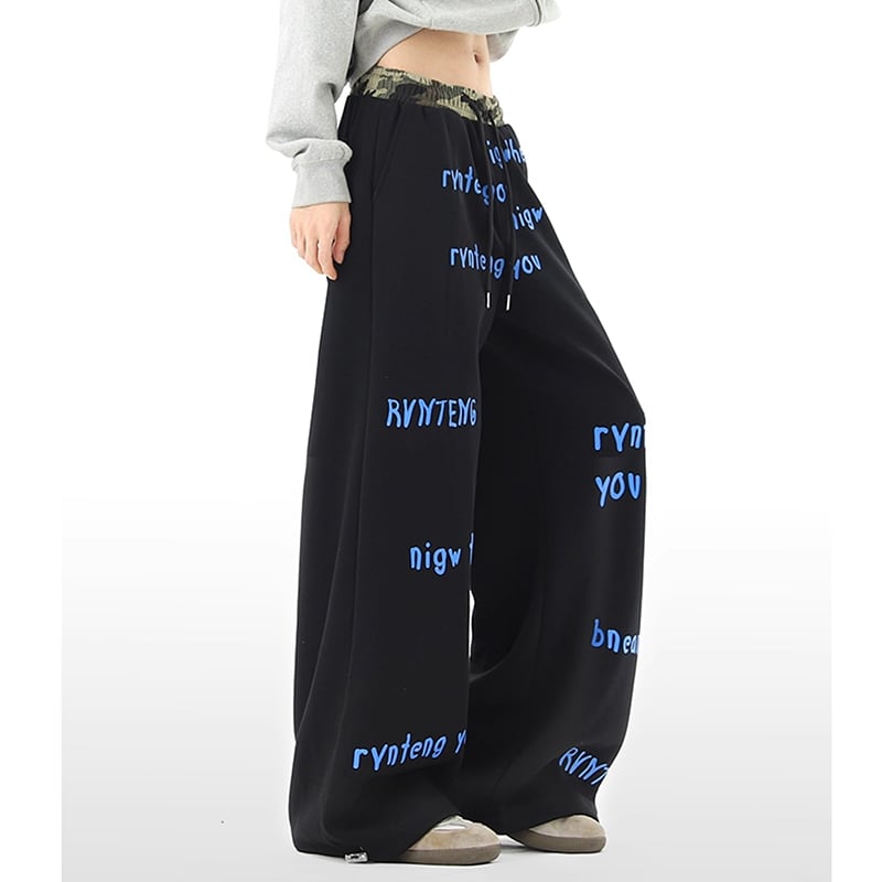 ✿秋新作!【Vesiboシリーズ】★ズボン★ 2color カジュアルパンツ ボトムス 男女兼用 メンズ アルファベット ウエストゴム 黒 灰