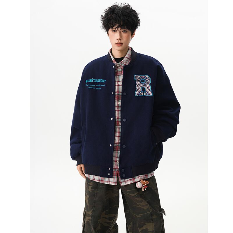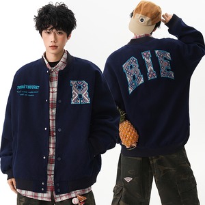 ✿秋新作!【Vesiboシリーズ】★ジャケット★ スタジャン アウター 男女兼用 メンズ カジュアル エスニック風 ネイビー