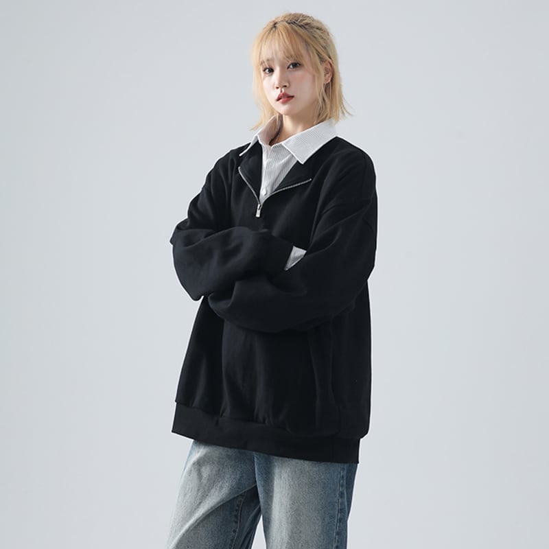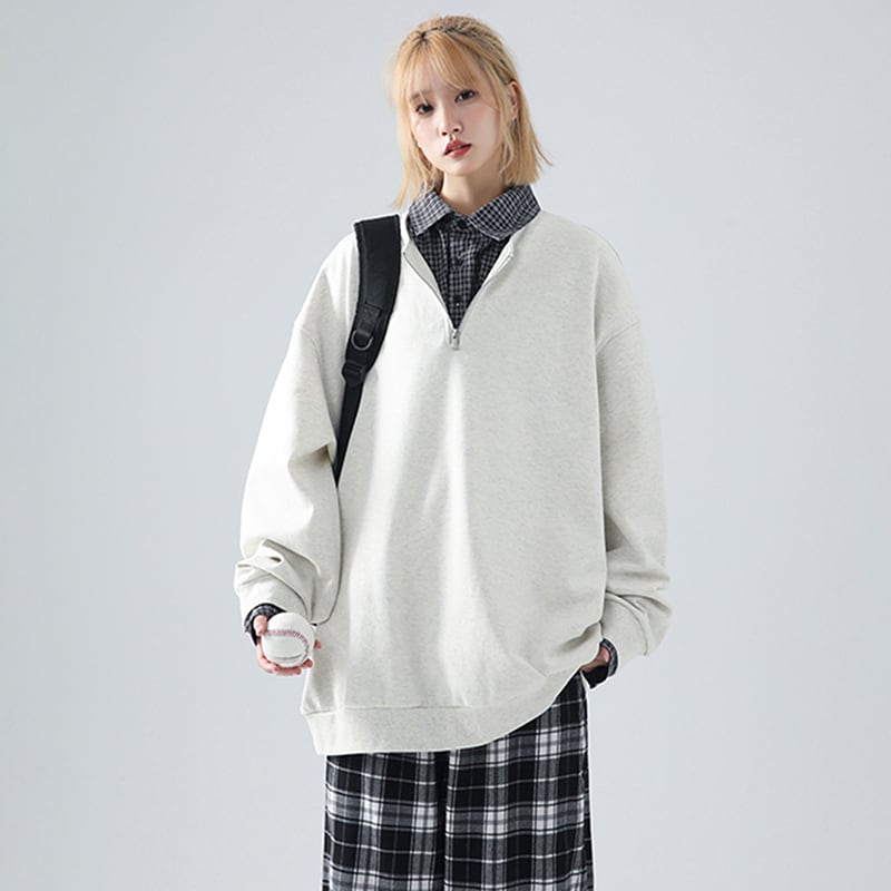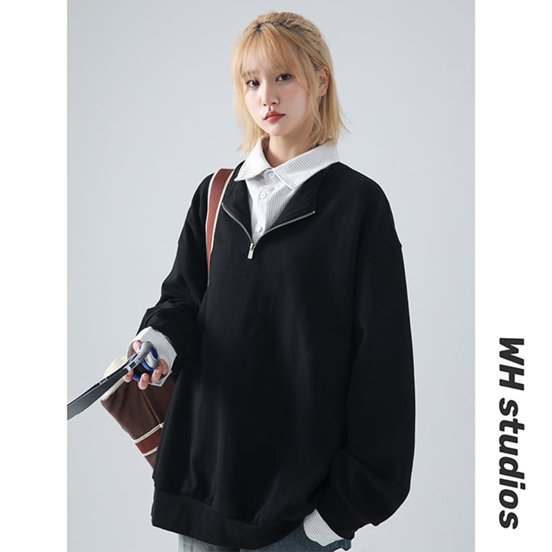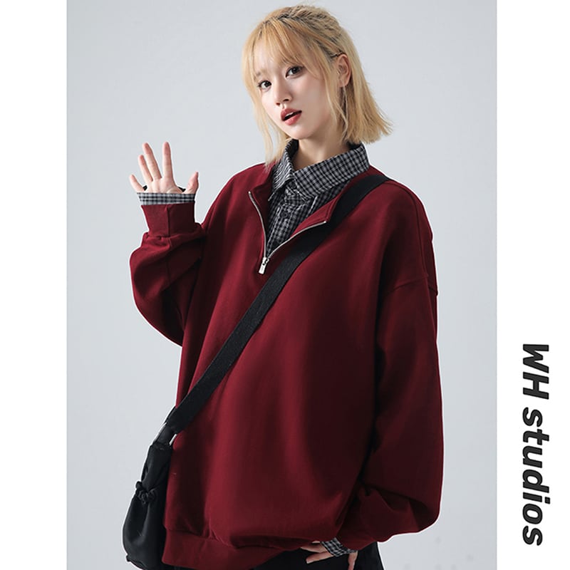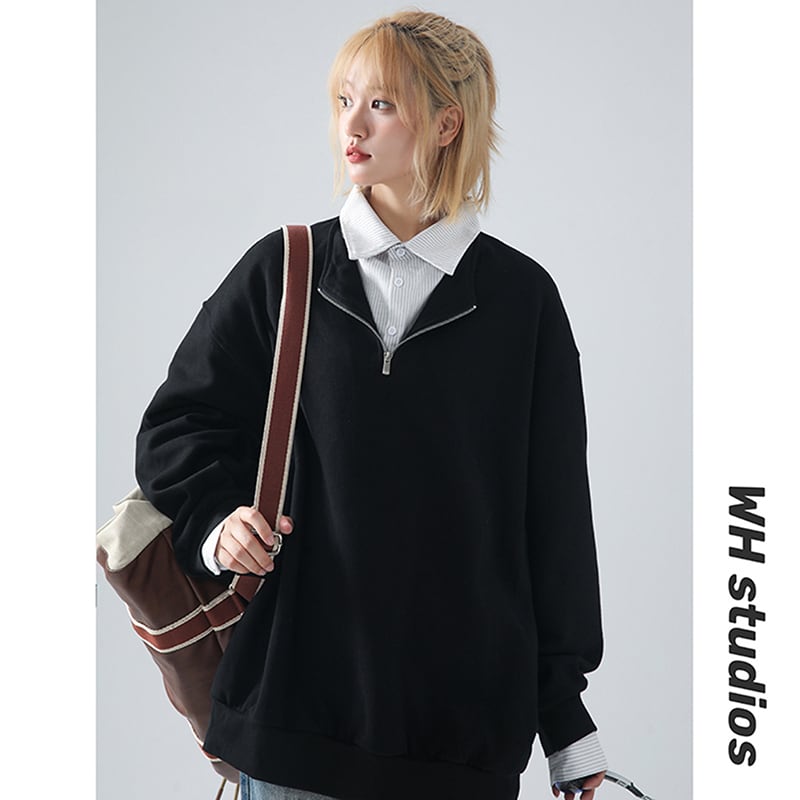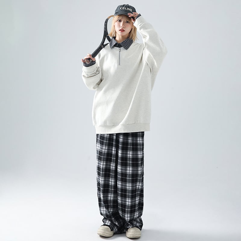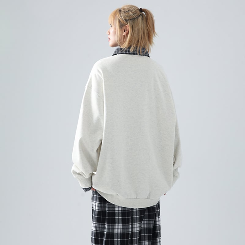 【藤伊曼シリーズ】★トップス★ 3color POLOシャツ 長袖 フェイクレイヤード 男女兼用 メンズ レディース 大きいサイズ 灰 黒 赤 チェック柄