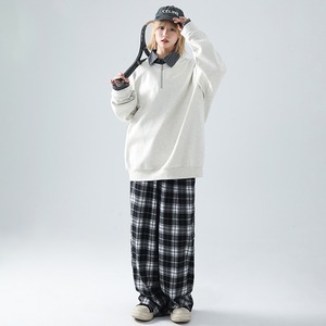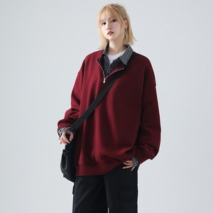 ✿秋新作!【藤伊曼シリーズ】★トップス★ 3color POLOシャツ 長袖 フェイクレイヤード 男女兼用 メンズ レディース 大きいサイズ 灰 黒 赤 チェック柄