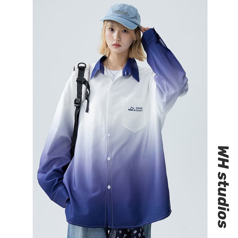 ✿秋新作!【藤伊曼シリーズ】★シャツ★ 4color トップス 長袖シャツ 男女兼用 メンズ レディース 大きいサイズ グラデーション
