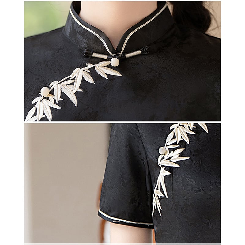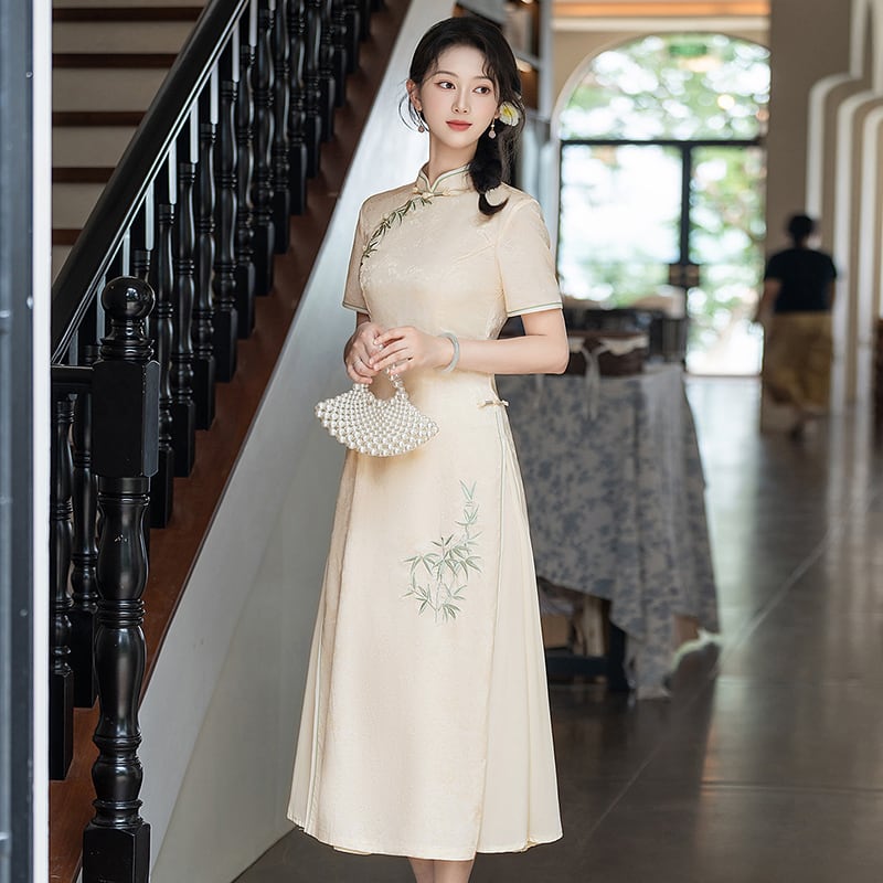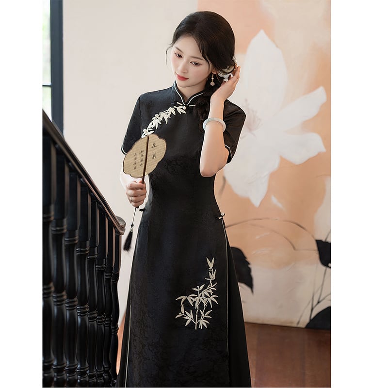 【HONGSHEシリーズ】★チャイナドレス★ 2color チャイナ風ワンピース アオザイ 刺繍 着痩せ デート パーティー 結婚式 大きいサイズ