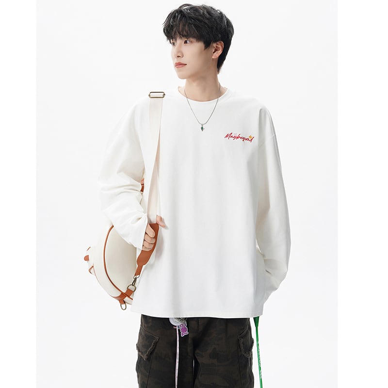 【NANSHIシリーズ】★Tシャツ★ 刺繍入り 2color トップス 長袖 男女兼用 アルファベット 花柄 ブラック ホワイト 黒 白
