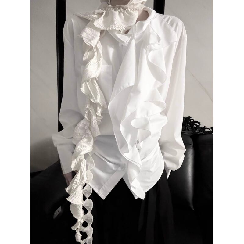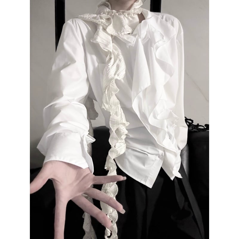 【Aontシリーズ】★長袖シャツ★ トップス 2color 男女兼用 メンズ レトロ デザイン性有り 白い ブラック レディース ホワイト 黒
