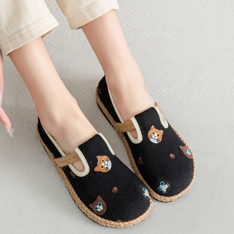 【MINZUFENGシリーズ】★チャイナ風靴★ 3color 刺繍靴 お靴 シューズ サイズ35-41 レディース 猫 猫柄 可愛い