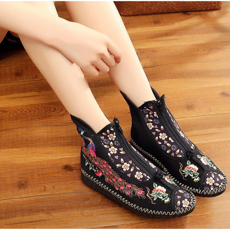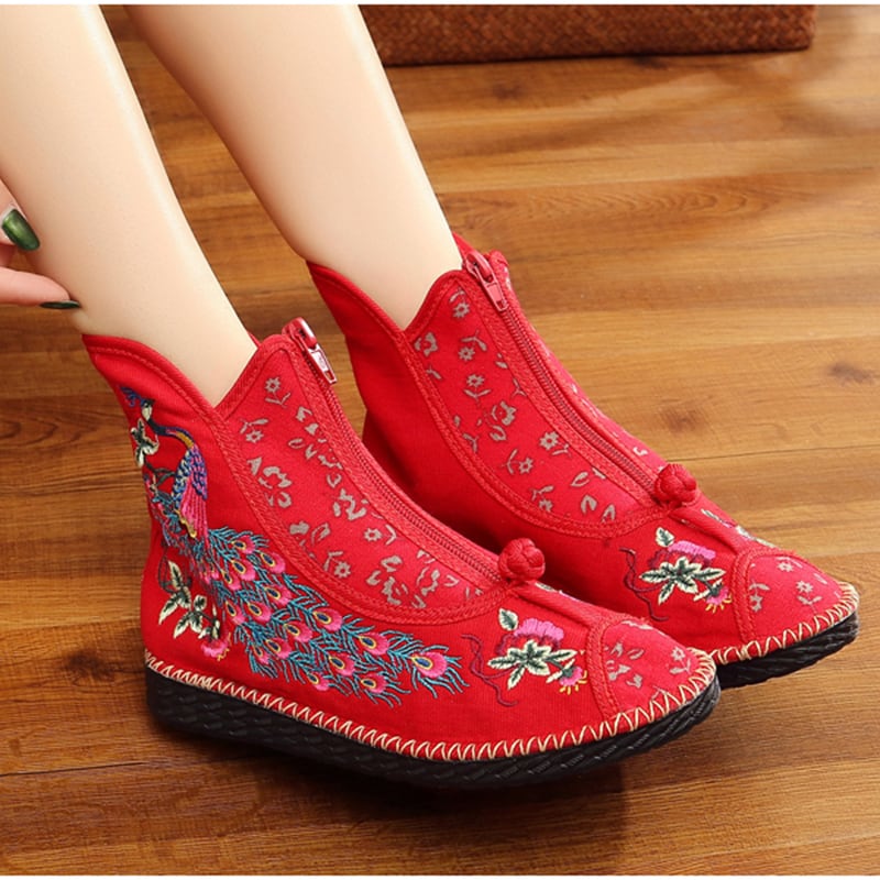 【TANGDUシリーズ】★チャイナ風靴★ 4color 2タイプ 刺繍靴 お靴 シューズ サイズ34-41 レディース クジャク 花柄