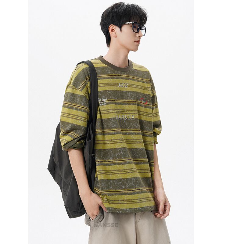 【NANSHIシリーズ】★Tシャツ★ 2color トップス 男女兼用 メンズ カジュアル 横縞 縞模様 おしゃれ
