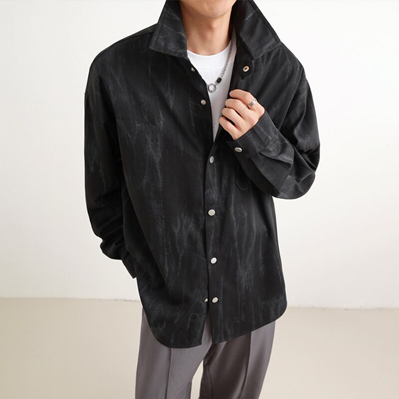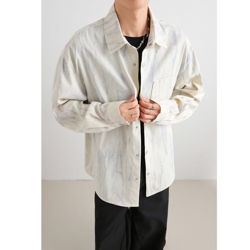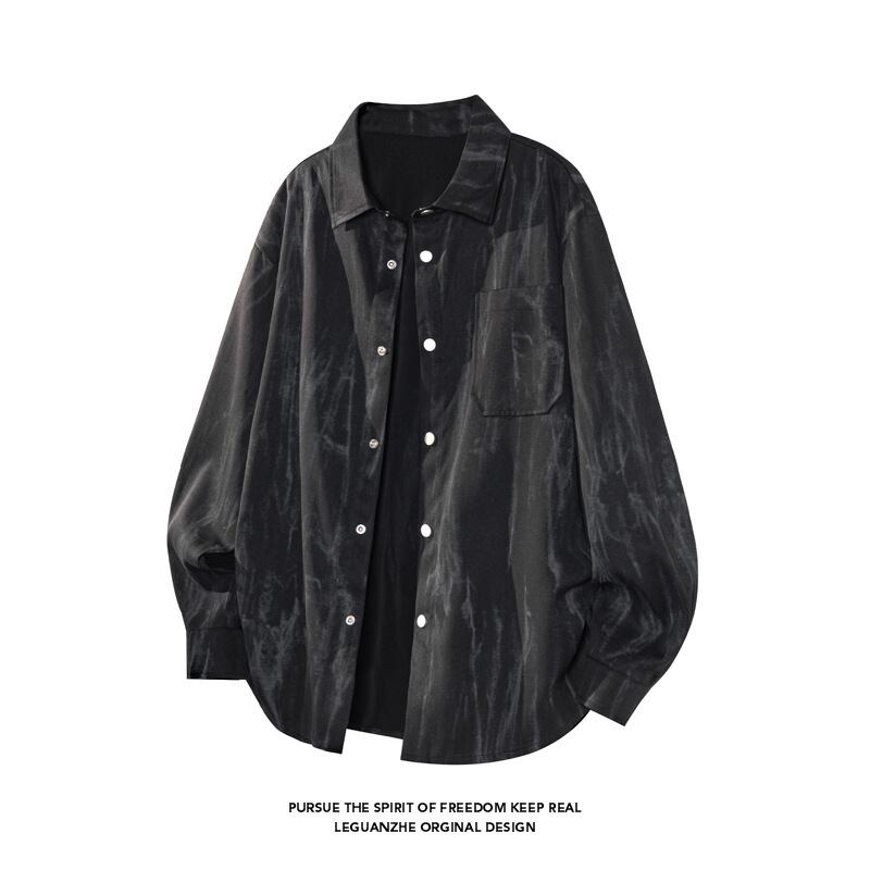 ✿秋新作!【BIGEMANシリーズ】★チャイナ風トップス★ 2color シャツ 長袖シャツ 男女兼用 メンズ 大きいサイズ 水墨柄
