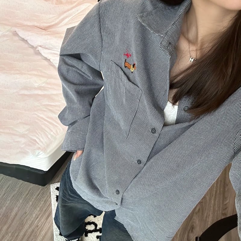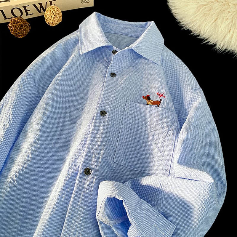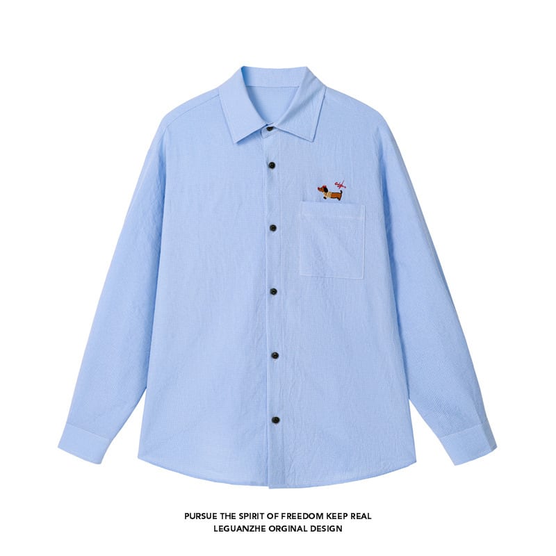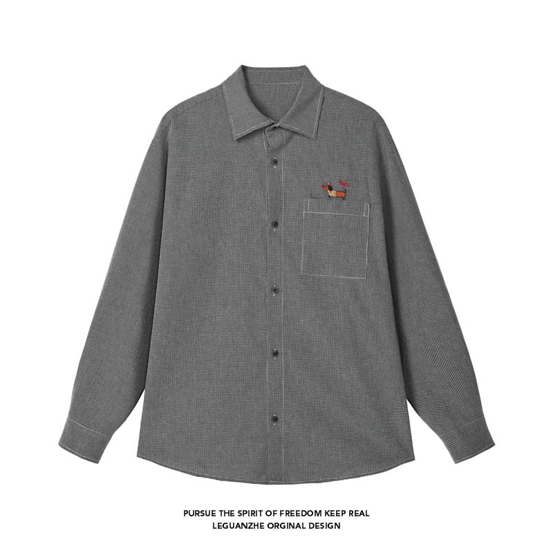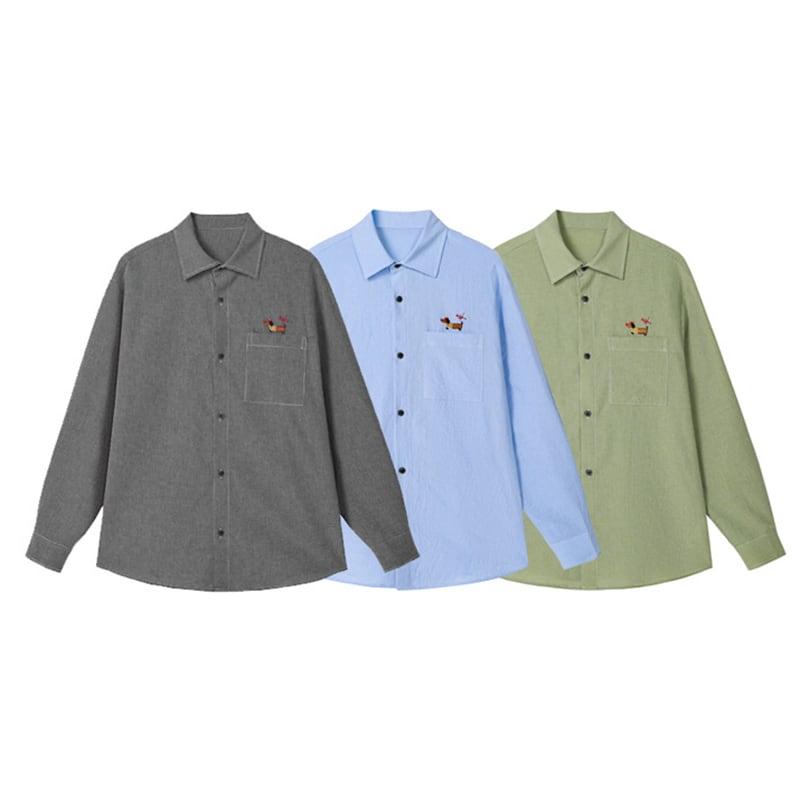 ✿秋新作!【BIGEMANシリーズ】★シャツ★ 2color トップス 長袖シャツ 男女兼用 メンズ 大きいサイズ 犬 いぬ 黒 青 緑