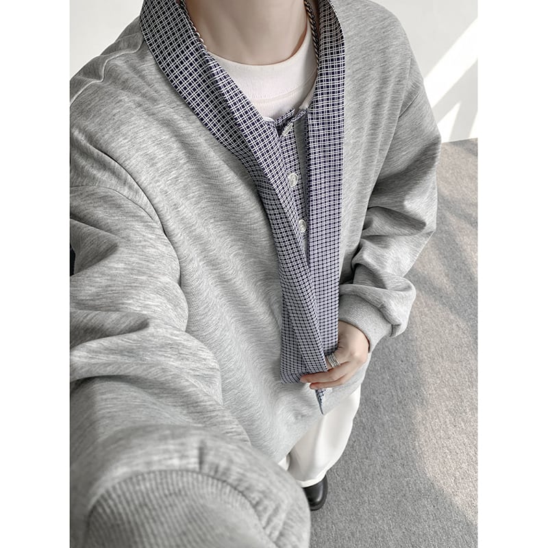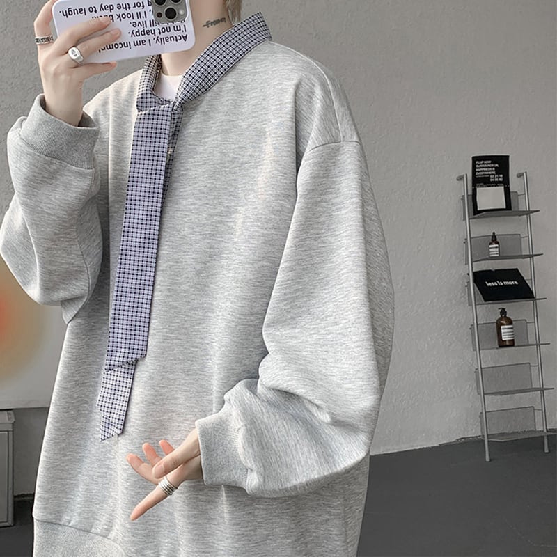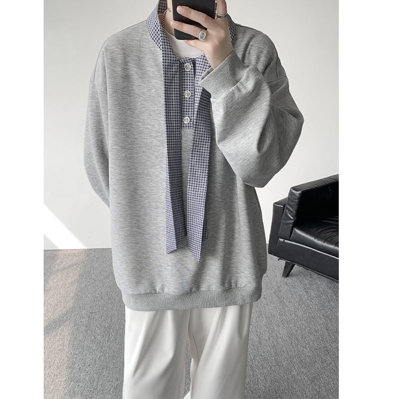 ✿秋新作!【CEXUシリーズ】★トップス★ 3color スウェット 男女兼用 メンズ 大きいサイズ 黒 灰 白 チェック柄