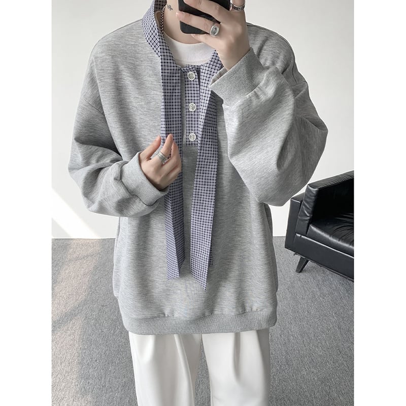 【CEXUシリーズ】★トップス★ 3color スウェット 男女兼用 メンズ 大きいサイズ 黒 灰 白 チェック柄