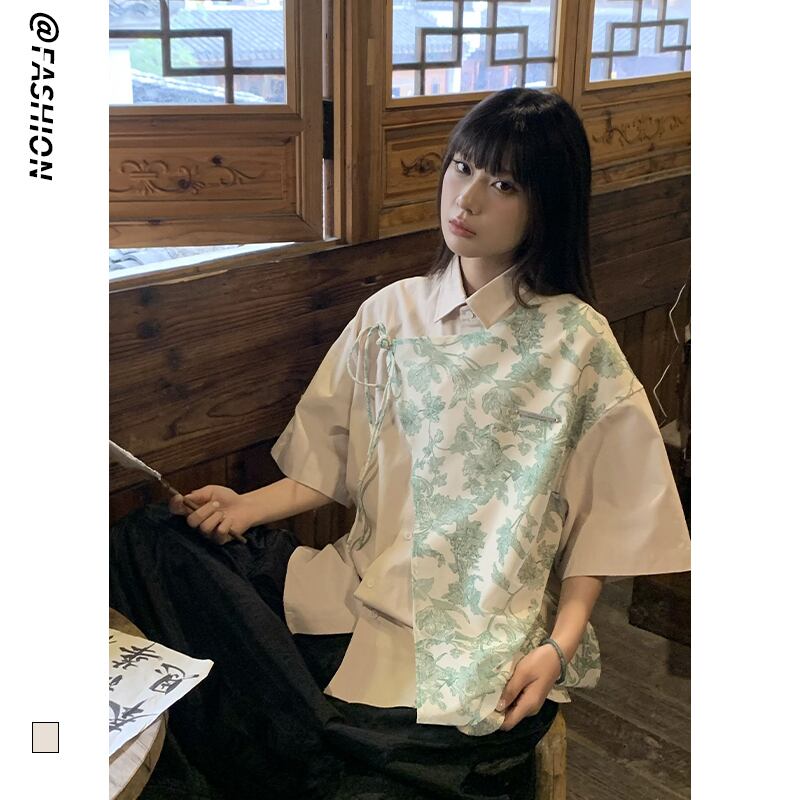 【NANJUNシリーズ】★チャイナ風トップス★ シャツ 半袖シャツ 男女兼用 メンズ コットン フェイクレイヤード