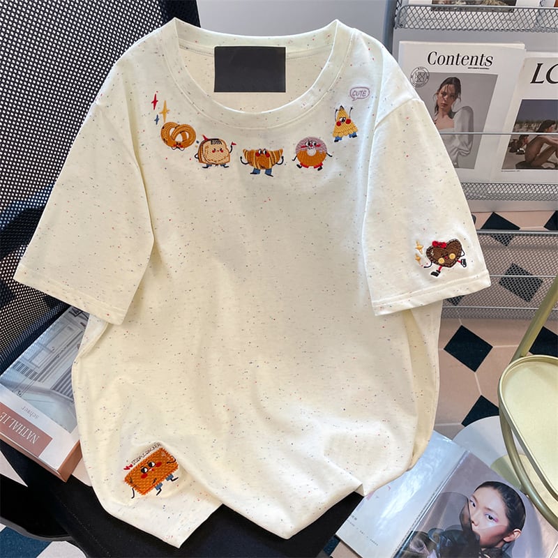 【LUOJIEMAIYUシリーズ】★トップス★ Tシャツ 半袖 レディース 大きいサイズ 刺繍 カートゥーン