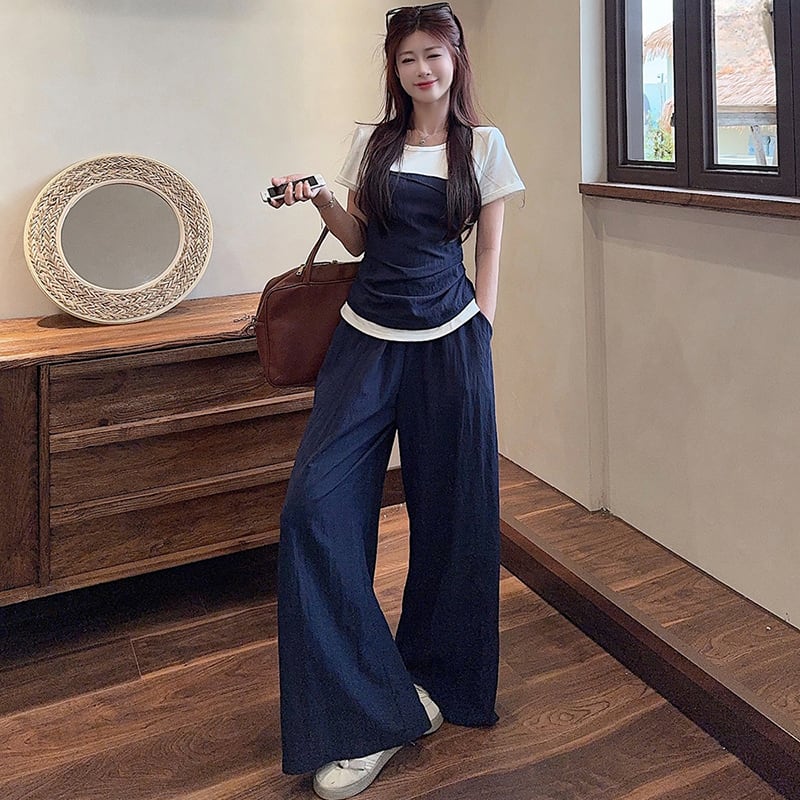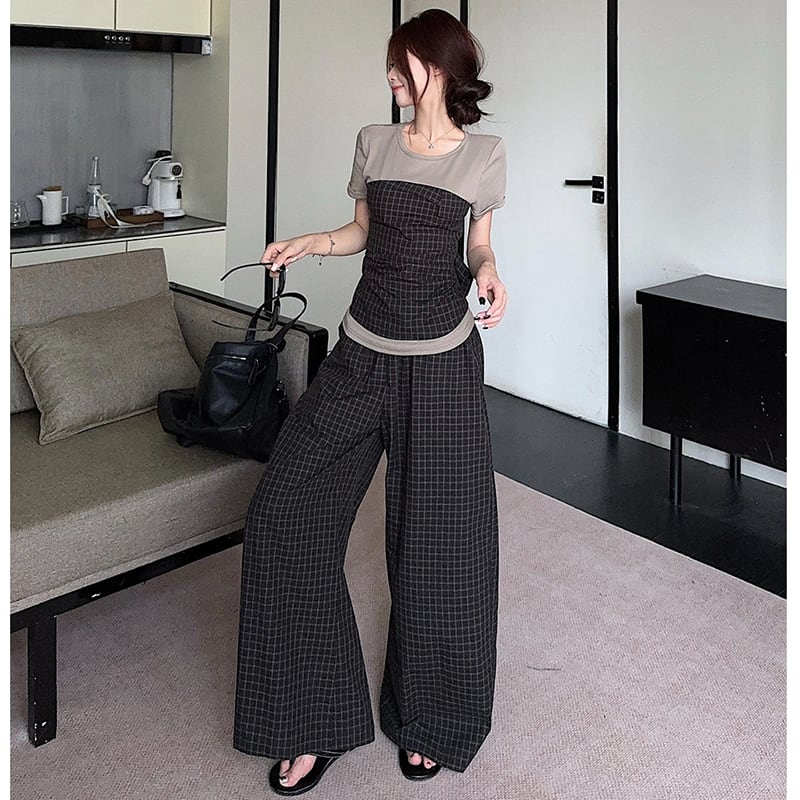 【Kumikumiシリーズ】★セットアップ 単品注文★ 2color Tシャツorズボン 上下セット カジュアル リボン 切り替え チェック柄