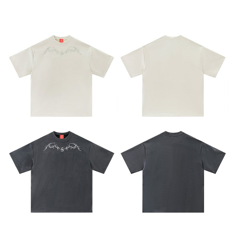 【GCYXシリーズ】★チャイナ風トップス★ 2color Tシャツ 半袖 刺繍 鹿の角 男女兼用 メンズ スエード