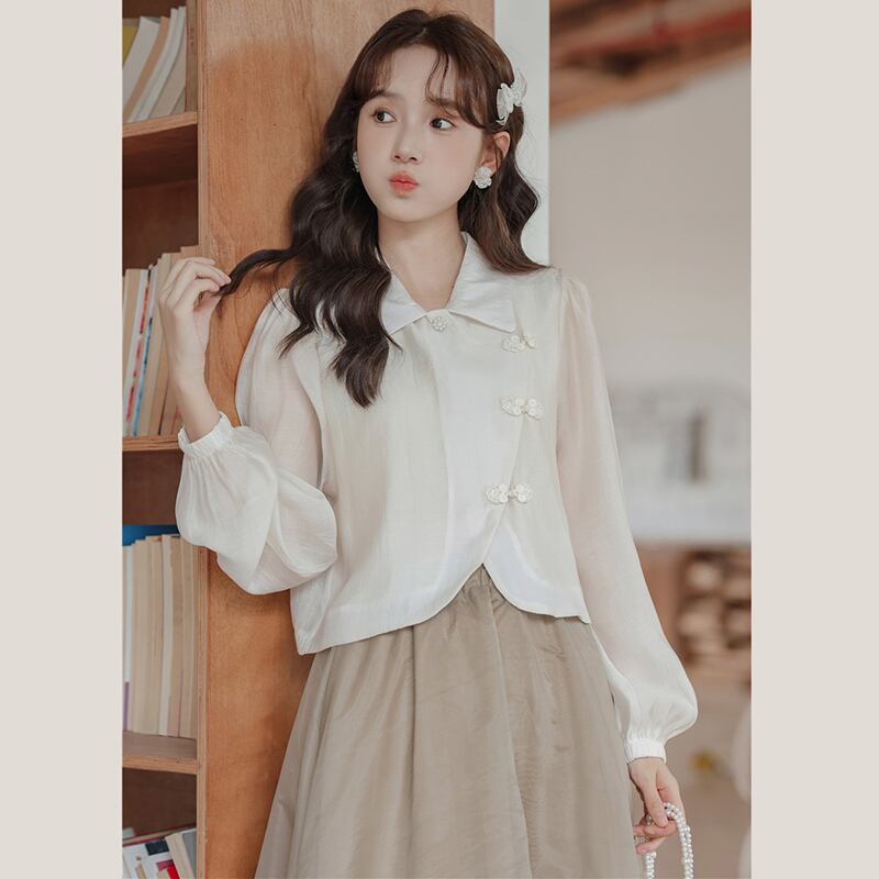 【DINGJINシリーズ】★チャイナ風トップス★ シャツ 長袖シャツ レディース シフォン チャイナボタン