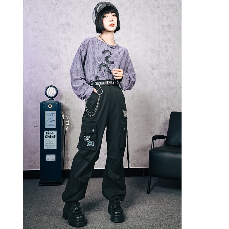 【古怪舍---怪物CLUBシリーズ】★チャイナ風ズボン★ ボトムス カジュアルパンツ ブラック 黒い