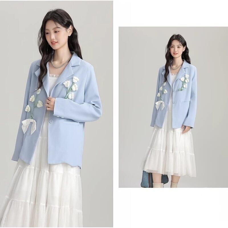 【JIANWENシリーズ】★アウター★ ブレザー 花柄 レディース ライトブルー 合わせやすい 通勤 おしゃれ