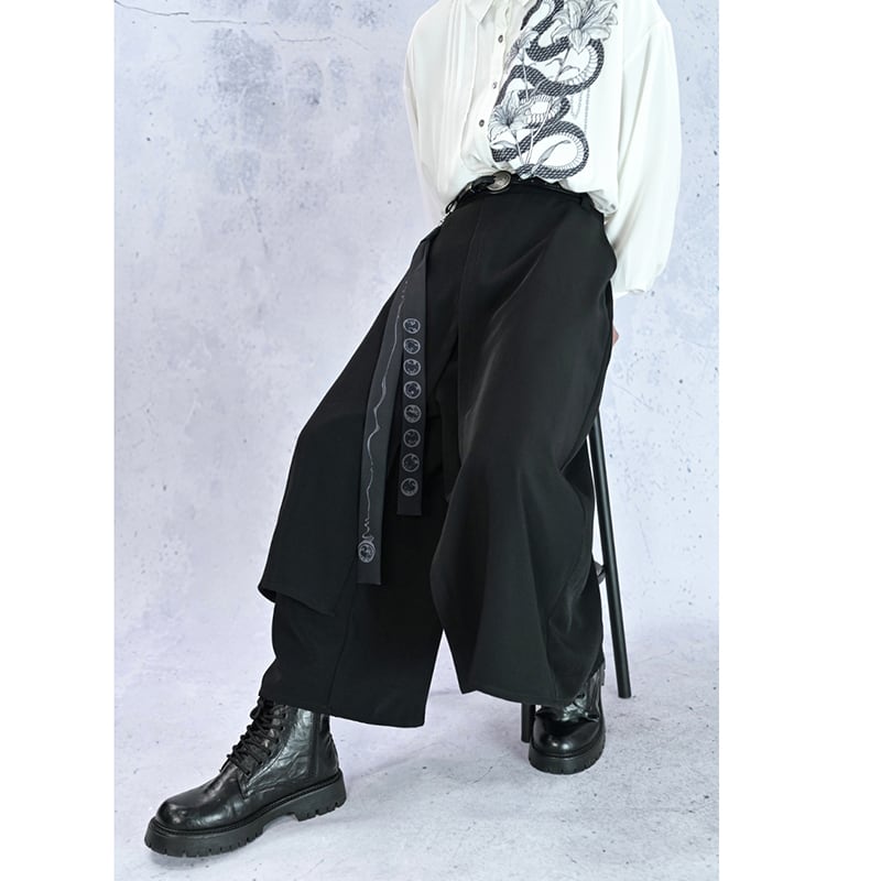【遊幻齋---金烏シリーズ】★チャイナ風ズボン★ ボトムス ガウチョパンツ メンズ オリジナル 黒