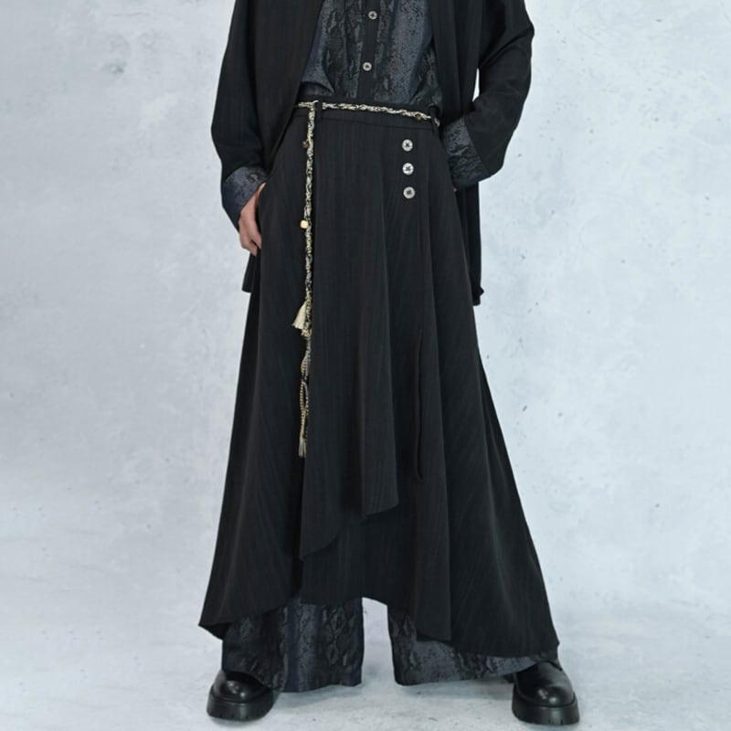 【遊幻齋---鱗境シリーズ】★チャイナ風ズボン★ ボトムス メンズ キュロットスカート オリジナル フェイクレイヤード スネークスキン