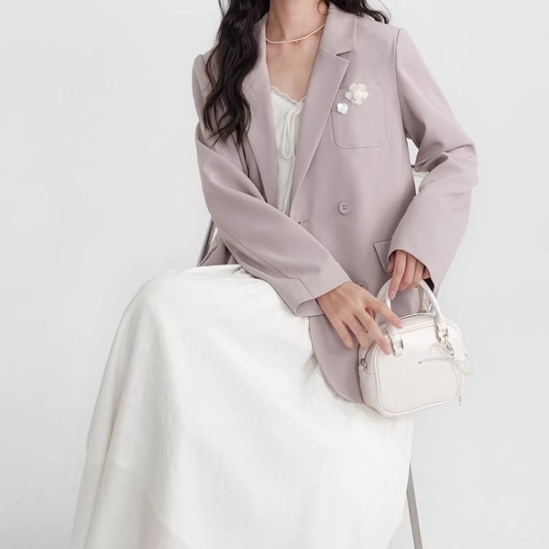 【MYYシリーズ】★アウター★ 通勤 ブレザー 花柄 レディース パープル ゆったり 長袖 かわいい