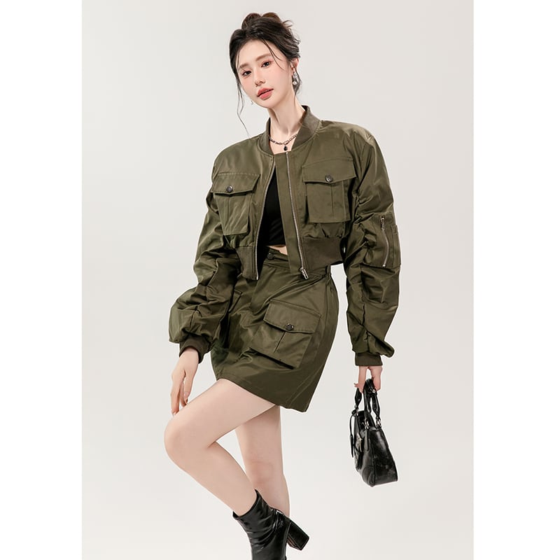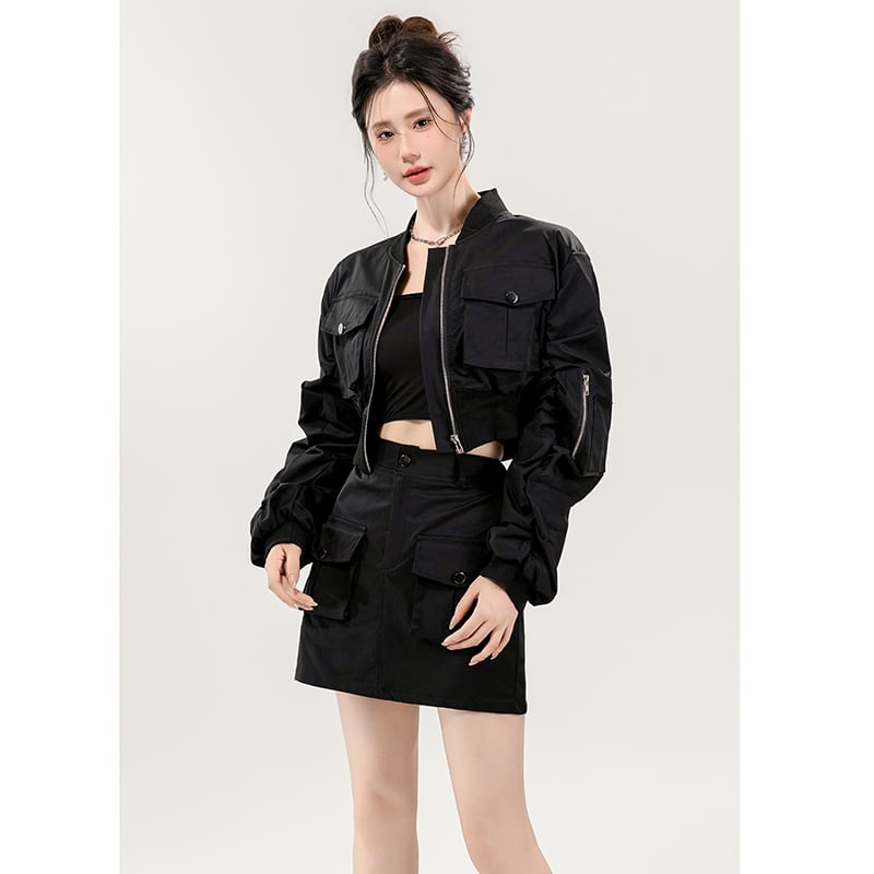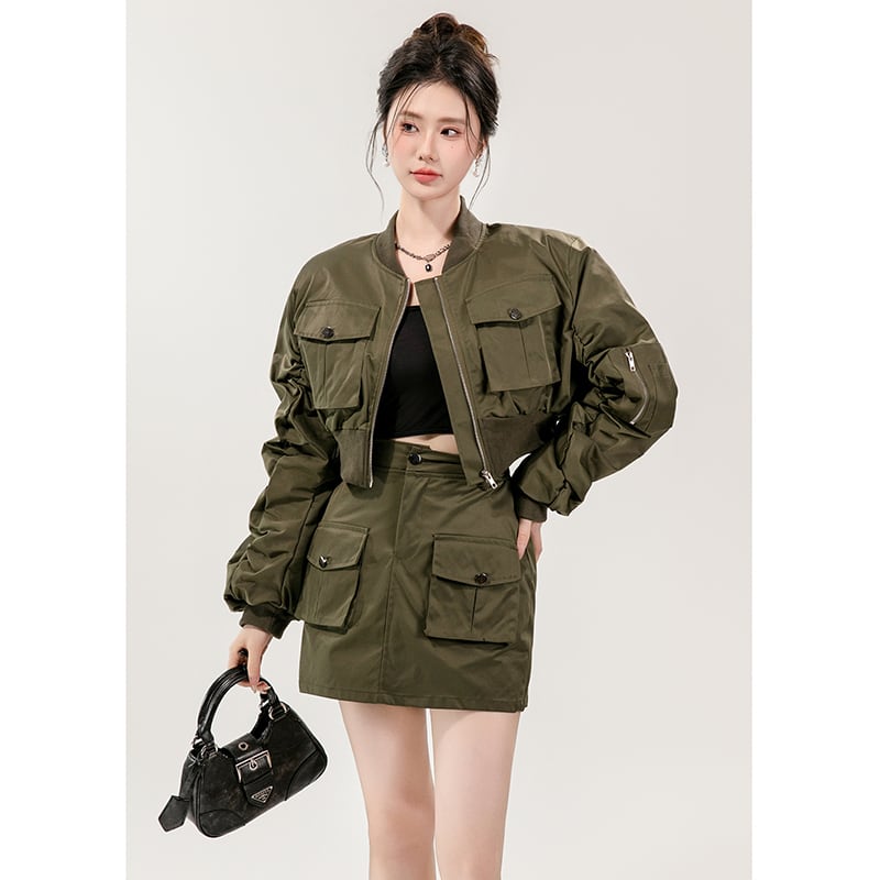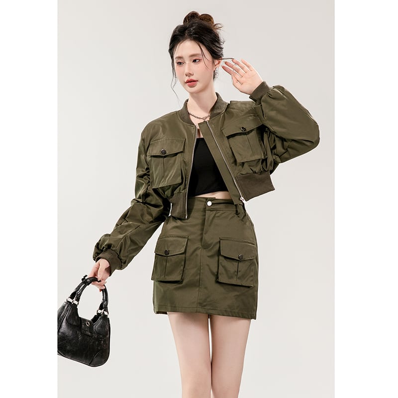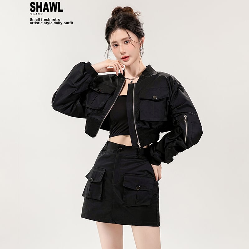 【SHAWLシリーズ】★セットアップ ★ 2color 2点セット アウター+スカート レディース ミニ丈 黒 緑