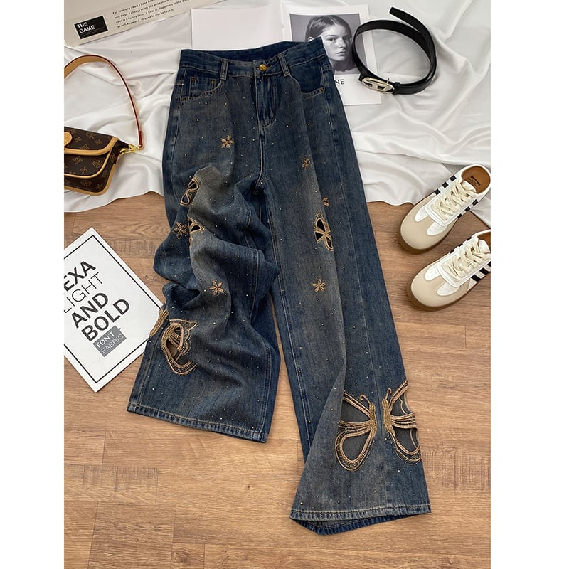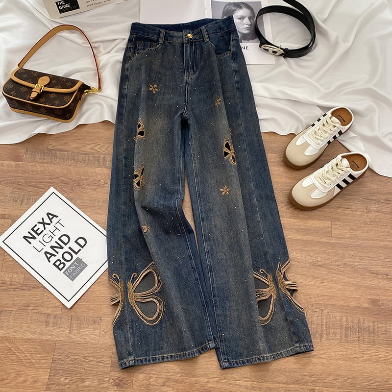 【YIGULIANGシリーズ】★ズボン★ デニムパンツ 3種類着丈 ボトムス レディース おしゃれ 蝶々