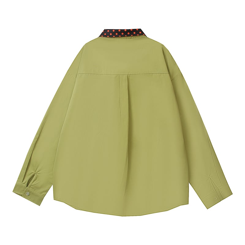 【UATONLINEシリーズ】★シャツ★ 2color トップス カートゥーン 長袖シャツ 男女兼用 メンズ 猫 ねこ 猫柄 ネコ ドット柄 配色