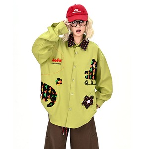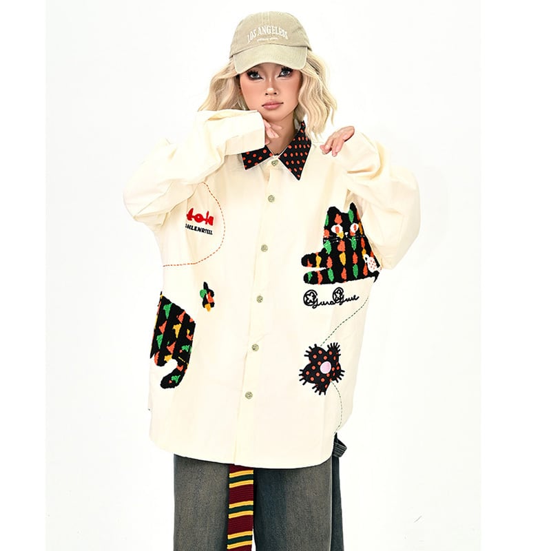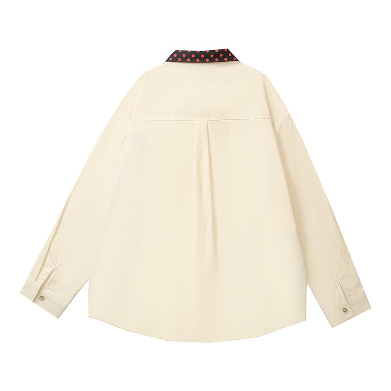 ✿秋新作!【UATONLINEシリーズ】★シャツ★ 2color トップス カートゥーン 長袖シャツ 男女兼用 メンズ 猫 ねこ 猫柄 ネコ ドット柄 配色